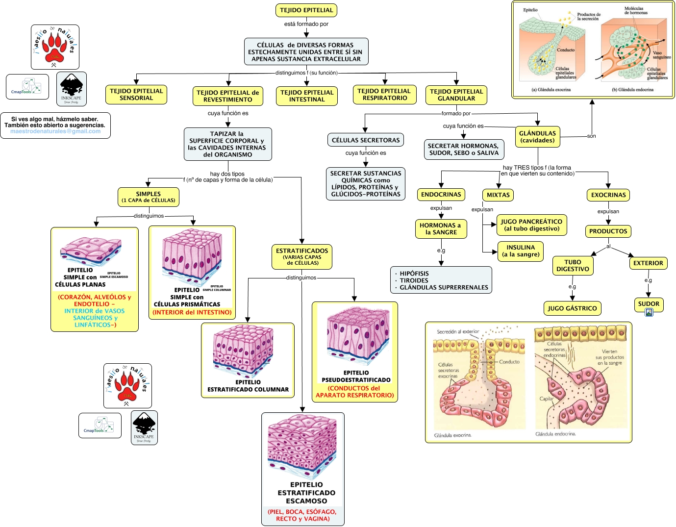 Este Cmap, tiene información relacionada con: Tema 01.04.02 Tejido epitelial, TEJIDO EPITELIAL GLANDULAR formado por CÉLULAS SECRETORAS, TEJIDO EPITELIAL de REVESTIMIENTO cuya función es TAPIZAR la SUPERFICIE CORPORAL y las CAVIDADES INTERNAS del ORGANISMO, MIXTAS expulsan INSULINA (a la sangre), ESTRATIFICADOS (VARIAS CAPAS de CÉLULAS) distinguimos (CONDUCTOS del APARATO RESPIRATORIO), GLÁNDULAS (cavidades) son, CÉLULAS de DIVERSAS FORMAS ESTECHAMENTE UNIDAS ENTRE SÍ SIN APENAS SUSTANCIA EXTRACELULAR distinguimos f (su función) TEJIDO EPITELIAL SENSORIAL, TAPIZAR la SUPERFICIE CORPORAL y las CAVIDADES INTERNAS del ORGANISMO hay dos tipos f (nº de capas y forma de la célula) SIMPLES (1 CAPA de CÉLULAS), GLÁNDULAS (cavidades) hay TRES tipos f (la forma en que vierten su contenido) EXOCRINAS, ESTRATIFICADOS (VARIAS CAPAS de CÉLULAS) distinguimos (PIEL, BOCA, ESÓFAGO, RECTO y VAGINA), EXOCRINAS expulsan PRODUCTOS, CÉLULAS de DIVERSAS FORMAS ESTECHAMENTE UNIDAS ENTRE SÍ SIN APENAS SUSTANCIA EXTRACELULAR distinguimos f (su función) TEJIDO EPITELIAL GLANDULAR, TAPIZAR la SUPERFICIE CORPORAL y las CAVIDADES INTERNAS del ORGANISMO hay dos tipos f (nº de capas y forma de la célula) ESTRATIFICADOS (VARIAS CAPAS de CÉLULAS), EXTERIOR e.g SUDOR, PRODUCTOS al EXTERIOR, CÉLULAS SECRETORAS cuya función es SECRETAR SUSTANCIAS QUÍMICAS como LÍPIDOS, PROTEÍNAS y GLÚCIDOS-PROTEÍNAS, TUBO DIGESTIVO e.g JUGO GÁSTRICO, GLÁNDULAS (cavidades) hay TRES tipos f (la forma en que vierten su contenido) MIXTAS, TEJIDO EPITELIAL está formado por CÉLULAS de DIVERSAS FORMAS ESTECHAMENTE UNIDAS ENTRE SÍ SIN APENAS SUSTANCIA EXTRACELULAR, CÉLULAS de DIVERSAS FORMAS ESTECHAMENTE UNIDAS ENTRE SÍ SIN APENAS SUSTANCIA EXTRACELULAR distinguimos f (su función) TEJIDO EPITELIAL INTESTINAL, ENDOCRINAS expulsan HORMONAS a la SANGRE