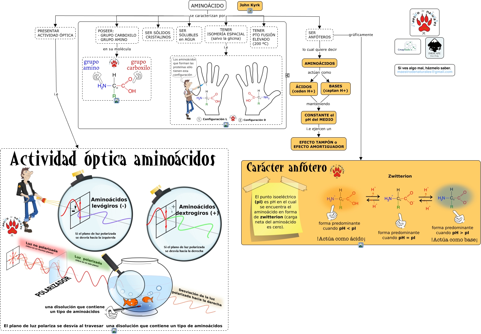 Este Cmap, tiene información relacionada con: Tema 03.02.00 Aminoácidos, AMINOÁCIDO se caracterizan por SER SOLUBLES en AGUA, AMINOÁCIDO se caracterizan por TENER PTO FUSIÓN ELEVADO (200 ºC), AMINOÁCIDO se caracterizan por SER SÓLIDOS CRISTALINOS, AMINOÁCIDOS actúan como BASES (captan H+), SER ANFÓTEROS lo cual quiere decir AMINOÁCIDOS, AMINOÁCIDO se caracterizan por SER ANFÓTEROS, SER ANFÓTEROS gráficamente, AMINOÁCIDO se caracterizan por PRESENTAR ACTIVIDAD ÓPTICA, AMINOÁCIDO se caracterizan por POSEER: · GRUPO CARBOXILO · GRUPO AMINO, CONSTANTE el pH del MEDIO i.e ejercen un EFECTO TAMPÓN o EFECTO AMORTIGUADOR, AMINOÁCIDOS actúan como ÁCIDOS (ceden H+), BASES (captan H+) manteniendo CONSTANTE el pH del MEDIO, AMINOÁCIDO se caracterizan por TENER ISOMERÍA ESPACIAL (salvo la glicina), ÁCIDOS (ceden H+) manteniendo CONSTANTE el pH del MEDIO, PRESENTAR ACTIVIDAD ÓPTICA i.e, POSEER: · GRUPO CARBOXILO · GRUPO AMINO en su molécula, TENER ISOMERÍA ESPACIAL (salvo la glicina) i.e
