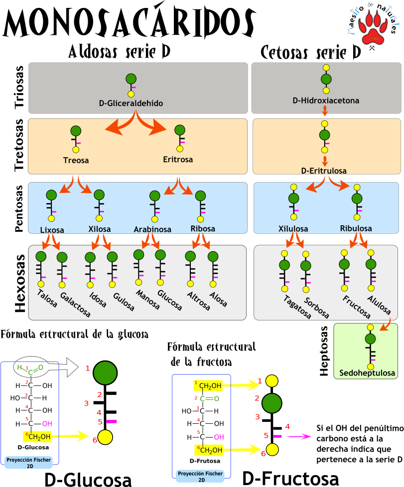 Este Cmap, tiene información relacionada con: 2.1 Qué son los glúcidos, propiedades y clasificación, GRUPO ALDEHÍDO i.e, GLÚCIDOS* se clasifican f (complejidad estructural) en POLIGOSACÁRIDOS (ᡂ monosacáridos), CLASIFICACIÓN MONOSACÁRIDOS (LINK) y por último leer RAMA GRIS, HIDRÓGENO (H) en estas proporciones CnH2nOn (1:2:!), MONOSACÁRIDOS (1 molécula que puede tener entre 3 y 9 átomos de carbono no hidrolizable) el más importante es, HETERÓSIDOS (monosacárido + .... + monsacárido + otra molécula f (tipo otro molécula) GLUCOPROTEÍNAS, GLÚCIDOS* son BIOMOLÉCULAS ORGÁNICAS, POLIGOSACÁRIDOS (ᡂ monosacáridos) f (tipo de monosacárido) HOMOPOLISACÁRIDO (monosacárido A + ... + monosacárido A), CnH2nOn (1:2:!) por lo que reciben el nombre de HIDRATOS de CARBONO, GLÚCIDOS* se clasifican f (complejidad estructural) en OLIGOSACÁRIDOS (de 2 a 10 monosacáridos), ÓSIDOS (unión de dos o más monosacáridos o unión de dos o más monosacáridos y otros compuestos) distinguimos HETERÓSIDOS (monosacárido + .... + monsacárido + otra molécula, RAMA VERDE luego leer RAMA MORADA, OXÍGENO (O) en estas proporciones CnH2nOn (1:2:!), NOTA: leer RAMA VERDE, e.g FRUCTOSA, OLIGOSACÁRIDOS (de 2 a 10 monosacáridos) reciben el nombre de AZÚCARES *, TENER un GRUPO CARBONILO (-CO) i.e CARBONO unido al OXÍGENO mediante DOBLE ENLACE, RAMA MORADA para así comprender CLASIFICACIÓN MONOSACÁRIDOS (LINK), HIDRÓLISIS (= el agua rompe las macromoléculas de glúcidos en unidades más pequeñas) aunque esta ácción también la hace los ENZIMAS llamadas HIDROLASAS, CARBONO unido al OXÍGENO mediante DOBLE ENLACE en los glúcidos, hay 2 posibilidades GRUPO CETÓNICO