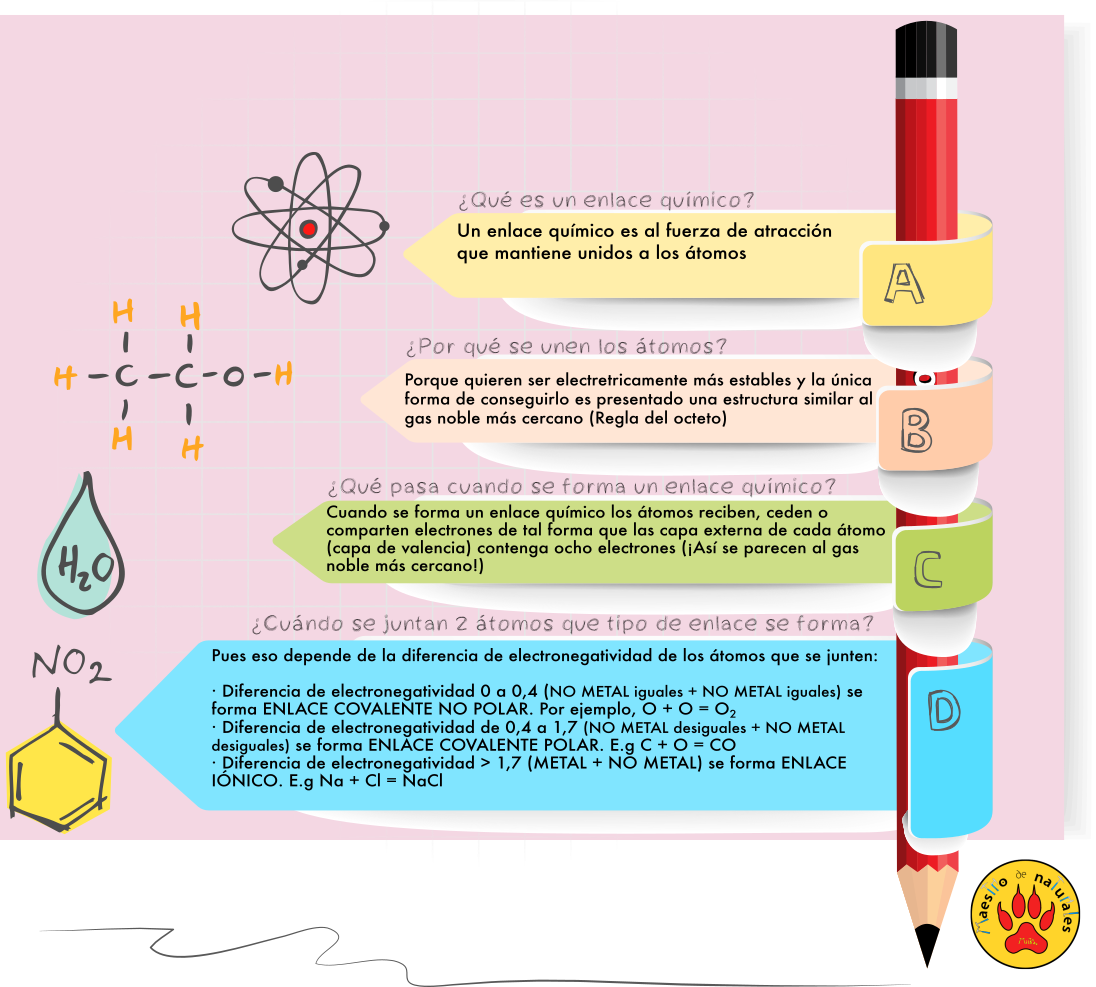 Este Cmap, tiene información relacionada con: 1.2 Los enlaces químicos, ENLACES QUÍMICOS son FUERZAS de ATRACCIÓN, MOLÉCULAS ENTRE SÍ - FUERZAS de ATRACCIÓN ELECTROSTÁTICA DÉBILES (=FUERZAS de VAN der WAALS), ELECTRONES al hacerlo IÓN POSITIVO (= catión), ÁTOMOS para FORMAR MOLÉCULAS hay DOS tipos f (tipo de átomo) ENLACES IÓNICOS (NO METAL + METAL), MOLÉCULAS (BIOMOLÉCULAS) son PROTEÍNAS, FUERZAS de PUENTE SALINO si interviene AGUA, MATERIA VIVA (materia inorgánica vs. materia orgánica) está formada por ÁTOMOS (BIOLEMENTOS), ELECTRONES al hacerlo IÓN NEGATIVO (= atión), REPARTIR ELECTRONES (= unos dan y otros reciben) donde METAL, SALES MINERALES se encuentran en DISOLUCIONES (disociadas en iones), DISOLUCIONES (disociadas en iones) e.g Na+, Cl-, DESIGUAL ocurre cuando se unen ÁTOMOS DIFERENTE ELECTRONEGATIVIDAD *, MATERIA (materia inorgánica vs. materia orgánica) se caracteriza por TENER MASA, DIPOLOS e.g, MOLÉCULAS NEUTRAS pero que presentan DIPOLOS INSTANTÁNEOS, COMPARTIR ELECTRONES ¿cómo se comparte?, pues de manera ... IGUAL, MOLÉCULAS (BIOMOLÉCULAS) son ÁCIDOS NUCLEICOS, ENLACES INTERMOLECULARES (= enlaces entre moléculas) es la unión de MOLÉCULAS ENTRE SÍ, FUERZAS de INTERACCIÓN HIDROFÓBICAS son FUERZAS DE COHESIÓN entre MOLÉCULAS, FUERZAS DE COHESIÓN entre MOLÉCULAS esto permite formar SUPRAMOLÉCULAS (e.g membrana plasmática)