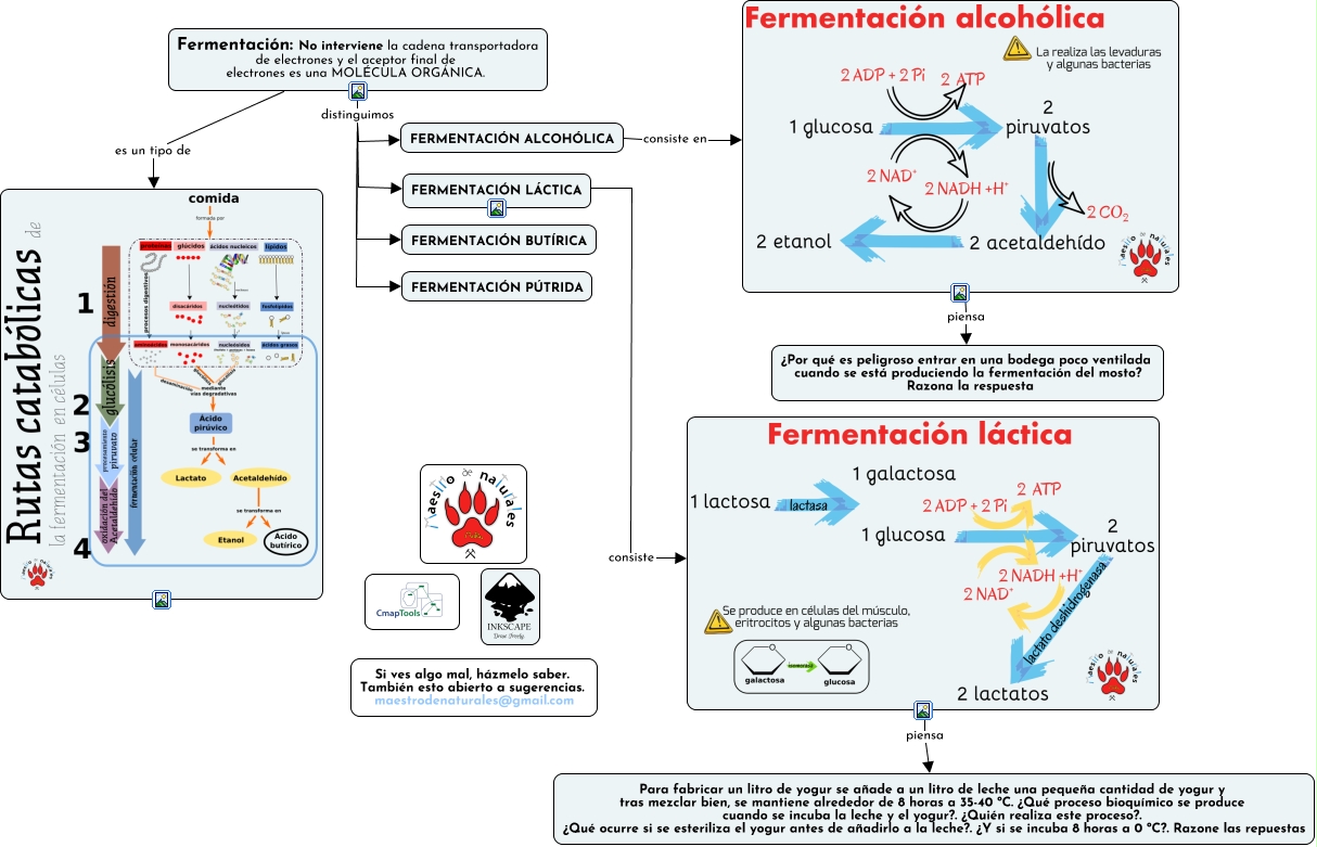 Este Cmap, tiene información relacionada con: Tema 08.07 Catabolismo por fermentación, Fermentación: No interviene la cadena transportadora de electrones y el aceptor final de electrones es una MOLÉCULA ORGÁNICA. es un tipo de, piensa ¿Por qué es peligroso entrar en una bodega poco ventilada cuando se está produciendo la fermentación del mosto? Razona la respuesta, Fermentación: No interviene la cadena transportadora de electrones y el aceptor final de electrones es una MOLÉCULA ORGÁNICA. distinguimos FERMENTACIÓN BUTÍRICA, FERMENTACIÓN LÁCTICA consiste, FERMENTACIÓN ALCOHÓLICA consiste en, Fermentación: No interviene la cadena transportadora de electrones y el aceptor final de electrones es una MOLÉCULA ORGÁNICA. distinguimos FERMENTACIÓN PÚTRIDA, Fermentación: No interviene la cadena transportadora de electrones y el aceptor final de electrones es una MOLÉCULA ORGÁNICA. distinguimos FERMENTACIÓN ALCOHÓLICA, Fermentación: No interviene la cadena transportadora de electrones y el aceptor final de electrones es una MOLÉCULA ORGÁNICA. distinguimos FERMENTACIÓN LÁCTICA, piensa Para fabricar un litro de yogur se añade a un litro de leche una pequeña cantidad de yogur y tras mezclar bien, se mantiene alrededor de 8 horas a 35-40 ºC. ¿Qué proceso bioquímico se produce cuando se incuba la leche y el yogur?. ¿Quién realiza este proceso?. ¿Qué ocurre si se esteriliza el yogur antes de añadirlo a la leche?. ¿Y si se incuba 8 horas a 0 ºC?. Razone las repuestas