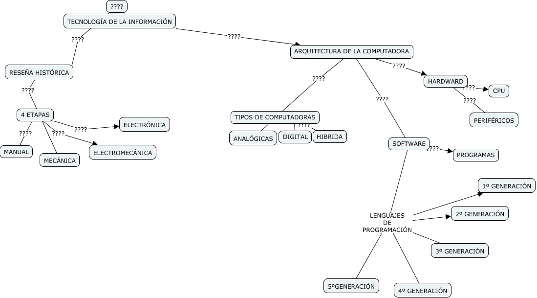 Este Cmap, tiene información relacionada con: MAPA CONCEPTUAL 2, ARQUITECTURA DE LA COMPUTADORA ???? SOFTWARE, SOFTWARE LENGUAJES DE PROGRAMACIÓN 4º GENERACIÓN, RESEÑA HISTÓRICA ???? MECÁNICA, SOFTWARE LENGUAJES DE PROGRAMACIÓN 3º GENERACIÓN, SOFTWARE LENGUAJES DE PROGRAMACIÓN 2º GENERACIÓN, HARDWARD ???? CPU, ???? ???? RESEÑA HISTÓRICA, 4 ETAPAS ???? MANUAL, TECNOLOGÍA DE LA INFORMACIÓN ???? ARQUITECTURA DE LA COMPUTADORA, 4 ETAPAS ???? ELECTROMECÁNICA, SOFTWARE ???? PROGRAMAS, TIPOS DE COMPUTADORAS ???? ANALÓGICAS, ARQUITECTURA DE LA COMPUTADORA ???? HARDWARD, TIPOS DE COMPUTADORAS ???? HIBRIDA, ARQUITECTURA DE LA COMPUTADORA ???? TIPOS DE COMPUTADORAS, 4 ETAPAS ???? ELECTRÓNICA, SOFTWARE LENGUAJES DE PROGRAMACIÓN 1º GENERACIÓN, HARDWARD ???? PERIFÉRICOS, SOFTWARE LENGUAJES DE PROGRAMACIÓN 5ºGENERACIÓN, TIPOS DE COMPUTADORAS ???? DIGITAL
