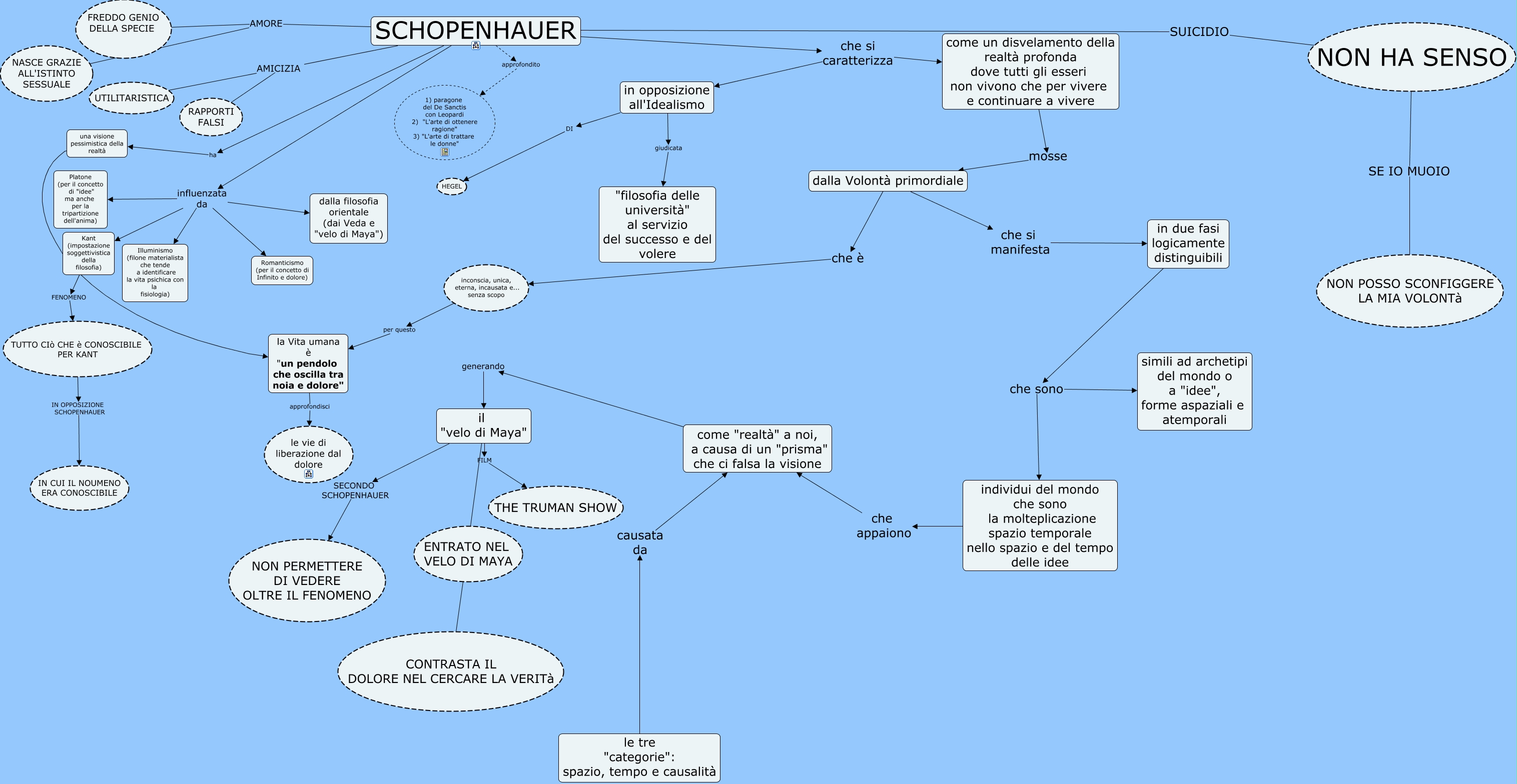 Questa Cmap, creata con IHMC CmapTools, contiene informazioni relative a: schopenahuer 5A, in opposizione all'Idealismo giudicata "filosofia delle università" al servizio del successo e del volere, in due fasi logicamente distinguibili che sono simili ad archetipi del mondo o a "idee", forme aspaziali e atemporali, NON HA SENSO SE IO MUOIO NON POSSO SCONFIGGERE LA MIA VOLONTà, individui del mondo che sono la molteplicazione spazio temporale nello spazio e del tempo delle idee che appaiono come "realtà" a noi, a causa di un "prisma" che ci falsa la visione, TUTTO CIò CHE è CONOSCIBILE PER KANT IN OPPOSIZIONE SCHOPENHAUER IN CUI IL NOUMENO ERA CONOSCIBILE, la Vita umana è "un pendolo che oscilla tra noia e dolore" approfondisci le vie di liberazione dal dolore, SCHOPENHAUER ha una visione pessimistica della realtà, Kant (impostazione soggettivistica della filosofia) FENOMENO TUTTO CIò CHE è CONOSCIBILE PER KANT, in due fasi logicamente distinguibili che sono individui del mondo che sono la molteplicazione spazio temporale nello spazio e del tempo delle idee, dalla Volontà primordiale che si manifesta in due fasi logicamente distinguibili, SCHOPENHAUER AMORE NASCE GRAZIE ALL'ISTINTO SESSUALE, il "velo di Maya" SECONDO SCHOPENHAUER NON PERMETTERE DI VEDERE OLTRE IL FENOMENO, una visione pessimistica della realtà la Vita umana è "un pendolo che oscilla tra noia e dolore", SCHOPENHAUER AMORE FREDDO GENIO DELLA SPECIE, SCHOPENHAUER AMICIZIA UTILITARISTICA, come un disvelamento della realtà profonda dove tutti gli esseri non vivono che per vivere e continuare a vivere mosse dalla Volontà primordiale, il "velo di Maya" FILM THE TRUMAN SHOW, SCHOPENHAUER che si caratterizza in opposizione all'Idealismo, SCHOPENHAUER influenzata da Kant (impostazione soggettivistica della filosofia), SCHOPENHAUER influenzata da Illuminismo (filone materialista che tende a identificare la vita psichica con la fisiologia)