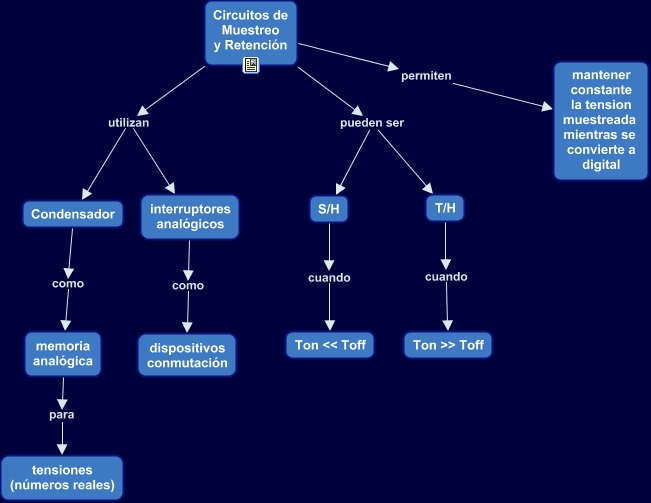 Este Cmap, tiene información relacionada con: 0.- S&H, interruptores analógicos como dispositivos conmutación, memoria analógica para tensiones (números reales), S/H cuando Ton << Toff, Circuitos de Muestreo y Retención utilizan Condensador, Circuitos de Muestreo y Retención utilizan interruptores analógicos, T/H cuando Ton >> Toff, Circuitos de Muestreo y Retención permiten mantener constante la tension muestreada mientras se convierte a digital, Condensador como memoria analógica, Circuitos de Muestreo y Retención pueden ser T/H, Circuitos de Muestreo y Retención pueden ser S/H