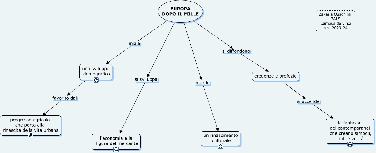 Questa Cmap, creata con IHMC CmapTools, contiene informazioni relative a: dopo il mille, credenze e profezie si accende la fantasia dei contemporanei che creano simboli, miti e verità, EUROPA DOPO IL MILLE inizia uno sviluppo demografico, EUROPA DOPO IL MILLE si sviluppa l'economia e la figura del mercante, EUROPA DOPO IL MILLE accade un rinascimento culturale, uno sviluppo demografico favorito dal progresso agricolo che porta alla rinascita della vita urbana, EUROPA DOPO IL MILLE si diffondono credenze e profezie