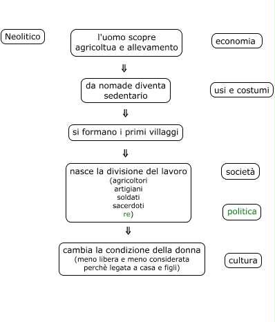 Questa Cmap, creata con IHMC CmapTools, contiene informazioni relative a: esempio, si formano i primi villaggi ⇓ nasce la divisione del lavoro (agricoltori artigiani soldati sacerdoti re), nasce la divisione del lavoro (agricoltori artigiani soldati sacerdoti re) ⇓ cambia la condizione della donna (meno libera e meno considerata perchè legata a casa e figli), l'uomo scopre agricoltua e allevamento ⇓ da nomade diventa sedentario, da nomade diventa sedentario ⇓ si formano i primi villaggi