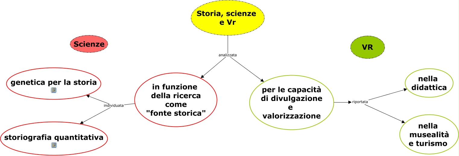Questa Cmap, creata con IHMC CmapTools, contiene informazioni relative a: storia scienze e Vr, per le capacità di divulgazione e valorizzazione riportata nella didattica, Storia, scienze e Vr analizzata per le capacità di divulgazione e valorizzazione, in funzione della ricerca come "fonte storica" individuata genetica per la storia, per le capacità di divulgazione e valorizzazione riportata nella musealità e turismo, in funzione della ricerca come "fonte storica" individuata storiografia quantitativa, Storia, scienze e Vr analizzata in funzione della ricerca come "fonte storica"
