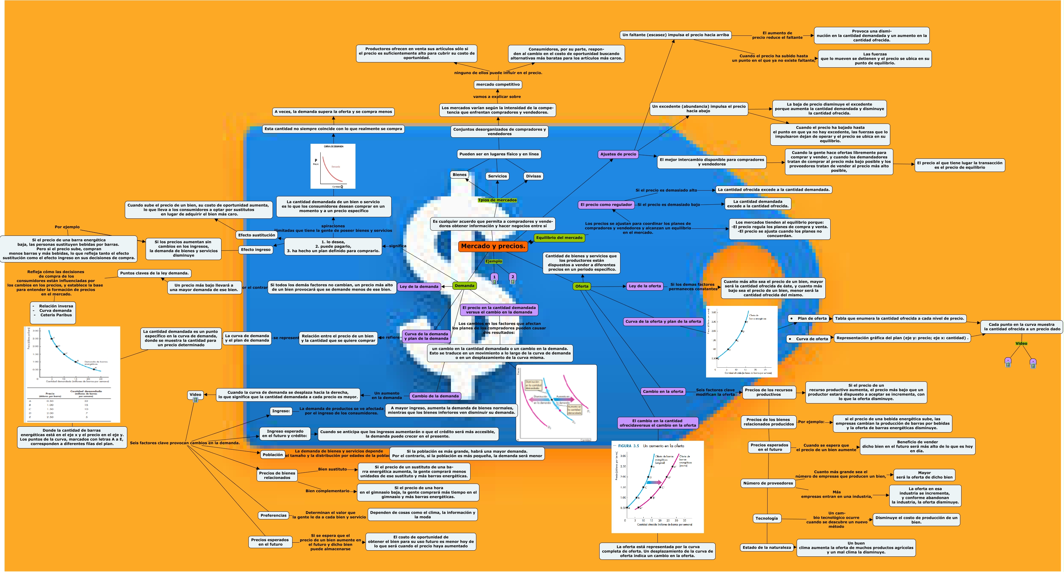 Este Cmap, tiene información relacionada con: TALLER 1 GRUPO 12025, Video Seis factores clave provocan cambios en la demanda. Población, Mercado y precios. ???? Demanda, Cada punto en la curva muestra la cantidad ofrecida a un precio dado Video ., Preferencias Determinan el valor que la gente le da a cada bien y servicio Dependen de cosas como el clima, la información y la moda, Efecto ingreso ???? Si los precios aumentan sin cambios en los ingresos, la demanda de bienes y servicios disminuye, Mercado y precios. Los precios se ajustan para coordinar los planes de compradores y vendedores y alcanzan un equilibrio en el mercado. Los mercados tienden al equilibrio porque: -El precio regula los planes de compra y venta. -El precio se ajusta cuando los planes no concuerdan., Precios de los bienes relacionados producidos Por ejemplo: si el precio de una bebida energética sube, las empresas cambian la producción de barras por bebidas y la oferta de barras energéticas disminuye., La cantidad demandada de un bien o servicio es lo que los consumidores desean comprar en un momento y a un precio específico Esta cantidad no siempre coincide con lo que realmente se compra, Puntos claves de la ley demanda. Refleja cómo las decisiones de compra de los consumidores están influenciadas por los cambios en los precios, y establece la base para entender la formación de precios en el mercado. - Relación inversa - Curva demanda - Ceteris Paribus, Tabla que enumera la cantidad ofrecida a cada nivel de precio. ???? Cada punto en la curva muestra la cantidad ofrecida a un precio dado, El precio en la cantidad demandada versus el cambio en la demanda Los cambios en los factores que afectan los planes de los compradores pueden causar dos resultados: un cambio en la cantidad demandada o un cambio en la demanda. Esto se traduce en un movimiento a lo largo de la curva de demanda o en un desplazamiento de la curva misma., Divisas ???? Pueden ser en lugares físico y en línea, 1. lo desea, 2. puede pagarlo, 3. ha hecho un plan definido para comprarlo. spiraciones ilimitadas que tiene la gente de poseer bienes y servicios La cantidad demandada de un bien o servicio es lo que los consumidores desean comprar en un momento y a un precio específico, Oferta ???? Cantidad de bienes y servicios que los productores están dispuestos a vender a diferentes precios en un periodo específico., El cambio en la cantidad ofrecidaversus el cambio en la oferta La oferta está representada por la curva completa de oferta. Un desplazamiento de la curva de oferta indica un cambio en la oferta., Demanda ???? Ley de la demanda, Ajustes de precio ???? Un excedente (abundancia) impulsa el precio hacia abajo, • Plan de oferta ???? • Curva de oferta, Precios esperados en el futuro ???? Número de proveedores, Estado de la naturaleza ???? Un buen clima aumenta la oferta de muchos productos agrícolas y un mal clima la disminuye.