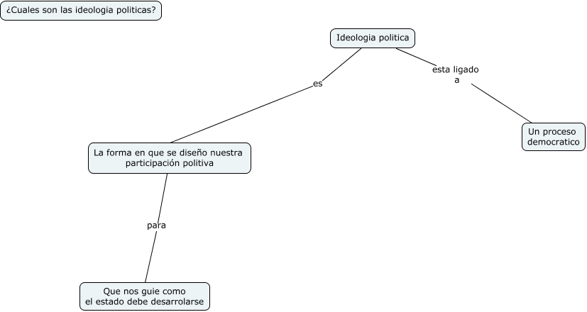 Este Cmap, tiene información relacionada con: Iideologias politicas, Ideologia politica es La forma en que se diseño nuestra participación politiva, La forma en que se diseño nuestra participación politiva para Que nos guie como el estado debe desarrolarse, Ideologia politica esta ligado a Un proceso democratico