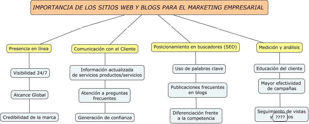 Este Cmap, tiene información relacionada con: MAPA, Comunicación con el Cliente ???? Generación de confianza, IMPORTANCIA DE LOS SITIOS WEB Y BLOGS PARA EL MARKETING EMPRESARIAL Presencia en línea, Posicionamiento en buscadores (SEO) ???? Diferenciación frente a la competencia, IMPORTANCIA DE LOS SITIOS WEB Y BLOGS PARA EL MARKETING EMPRESARIAL Comunicación con el Cliente, Medición y análisis ???? ????, IMPORTANCIA DE LOS SITIOS WEB Y BLOGS PARA EL MARKETING EMPRESARIAL Medición y análisis, Presencia en línea ???? Credibilidad de la marca, IMPORTANCIA DE LOS SITIOS WEB Y BLOGS PARA EL MARKETING EMPRESARIAL Posicionamiento en buscadores (SEO)