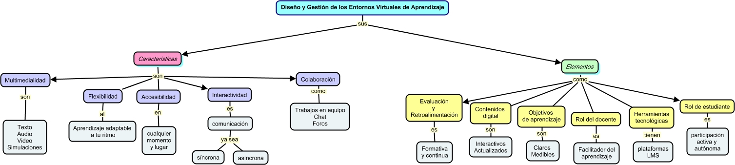 Este Cmap, tiene información relacionada con: ACT1_NDD, Herramientas tecnológicas tienen plataformas LMS, comunicación ya sea síncrona, Flexibilidad al Aprendizaje adaptable a tu ritmo, Evaluación y Retroalimentación es Formativa y continua, Diseño y Gestión de los Entornos Virtuales de Aprendizaje sus Caracteristicas, Accesibilidad en cualquier momento y lugar, Diseño y Gestión de los Entornos Virtuales de Aprendizaje sus Elementos, Rol de estudiante es participación activa y autónoma, Interactividad es comunicación, Elementos como Rol de estudiante, Elementos como Rol del docente, Elementos como Contenidos digital, Elementos como Evaluación y Retroalimentación, Rol del docente es Facilitador del aprendizaje, Colaboración como Trabajos en equipo Chat Foros, Caracteristicas son Colaboración, Contenidos digital son Interactivos Actualizados, Multimedialidad son Texto Audio Video Simulaciones, comunicación ya sea asíncrona, Caracteristicas son Accesibilidad