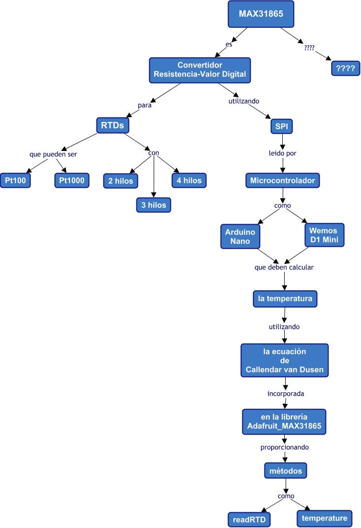 Este Cmap, tiene información relacionada con: MAX31865, la temperatura utilizando la ecuación de Callendar van Dusen, Microcontrolador como Wemos D1 Mini, MAX31865 ???? ????, métodos como readRTD, RTDs con 3 hilos, RTDs con 4 hilos, MAX31865 es Convertidor Resistencia-Valor Digital, Convertidor Resistencia-Valor Digital utilizando SPI, SPI leido por Microcontrolador, métodos como temperature, en la librería Adafruit_MAX31865 proporcionando métodos, RTDs que pueden ser Pt100, Arduino Nano que deben calcular la temperatura, la ecuación de Callendar van Dusen incorporada en la librería Adafruit_MAX31865, RTDs con 2 hilos, Convertidor Resistencia-Valor Digital para RTDs, Microcontrolador como Arduino Nano, RTDs que pueden ser Pt1000, Wemos D1 Mini que deben calcular la temperatura