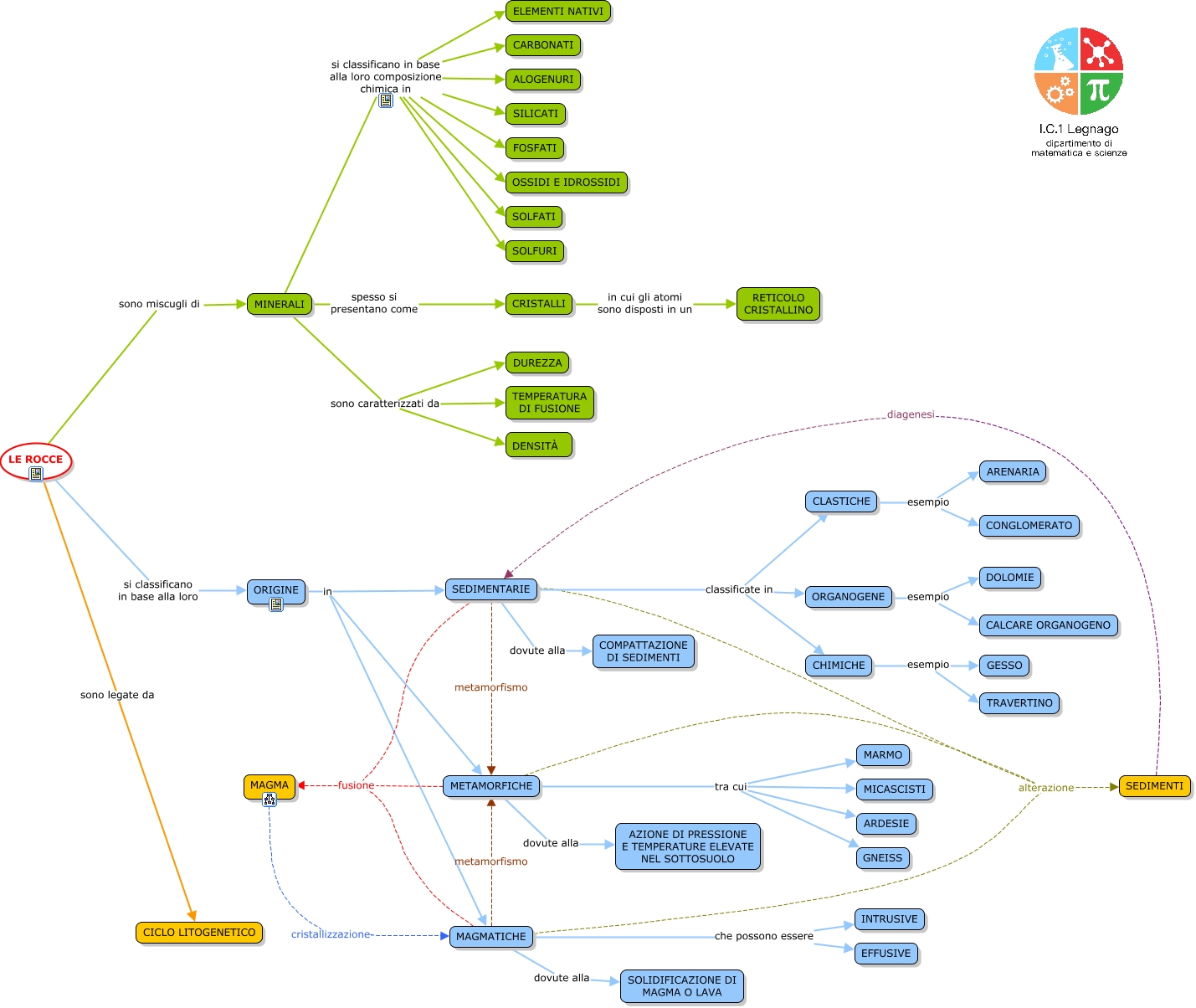 Questa Cmap, creata con IHMC CmapTools, contiene informazioni relative a: rocce e minerali, SEDIMENTARIE alterazione SEDIMENTI, MINERALI si classificano in base alla loro composizione chimica in SILICATI, LE ROCCE sono legate da CICLO LITOGENETICO, CHIMICHE esempio GESSO, MINERALI si classificano in base alla loro composizione chimica in ELEMENTI NATIVI, ORGANOGENE esempio CALCARE ORGANOGENO, CLASTICHE esempio ARENARIA, CLASTICHE esempio CONGLOMERATO, SEDIMENTARIE classificate in CLASTICHE, SEDIMENTI diagenesi SEDIMENTARIE, MINERALI sono caratterizzati da DUREZZA, MINERALI sono caratterizzati da TEMPERATURA DI FUSIONE, MINERALI si classificano in base alla loro composizione chimica in ALOGENURI, METAMORFICHE alterazione SEDIMENTI, MINERALI si classificano in base alla loro composizione chimica in FOSFATI, LE ROCCE si classificano in base alla loro ORIGINE, SEDIMENTARIE metamorfismo METAMORFICHE, MAGMATICHE dovute alla SOLIDIFICAZIONE DI MAGMA O LAVA, SEDIMENTARIE dovute alla COMPATTAZIONE DI SEDIMENTI, MINERALI si classificano in base alla loro composizione chimica in SOLFATI