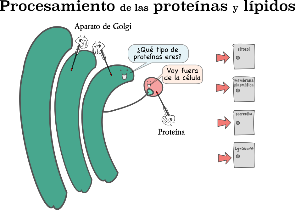 Aparato de Golgi.mp4 Aparato de Golgi.png Función del aparato de Golgi.png Procesamiento de las proteínas y los lípidos.png Transporte de lípidos y proteínas.png