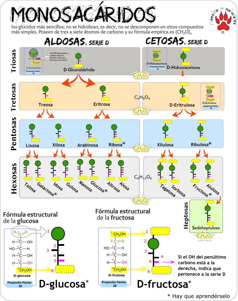 01 Fórmula estructural de la ribosa.png 02 Fórmula estructural de ribosa.png Azúcares reductore del vino.url Clasificación de los monosacáridos.png Enlace hemiacetal en la glucosa lineal.png Estudia estos 6 monosacáridos.png Fórmula de la glucosa.png Fructosa.png Monosacáridos.png Monosacáridos reductores.url Reactivo de Fehling.png Sin azúcar.url Teoría de la reducción de azúcares.url Tipos de isomerismos en biomoléculas orgánicas.png