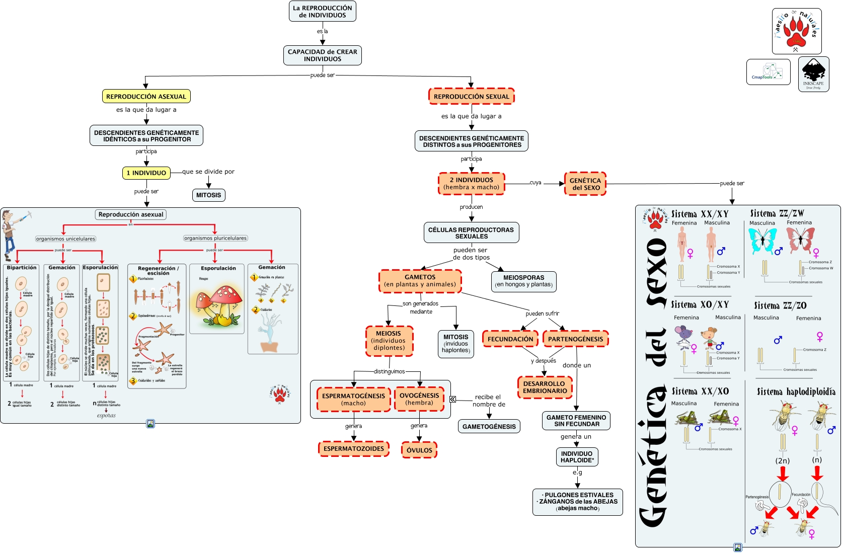 Este Cmap, tiene información relacionada con: Tema 03.06 Genes ligados, CAPACIDAD de CREAR INDIVIDUOS puede ser REPRODUCCIÓN ASEXUAL, REPRODUCCIÓN SEXUAL es la que da lugar a DESCENDIENTES GENÉTICAMENTE DISTINTOS a sus PROGENITORES, CAPACIDAD de CREAR INDIVIDUOS puede ser REPRODUCCIÓN SEXUAL, CÉLULAS REPRODUCTORAS SEXUALES pueden ser de dos tipos MEIOSPORAS (en hongos y plantas), La REPRODUCCIÓN de INDIVIDUOS es la CAPACIDAD de CREAR INDIVIDUOS, 2 INDIVIDUOS (hembra x macho) producen CÉLULAS REPRODUCTORAS SEXUALES, GAMETOS (en plantas y animales) son generados mediante MEIOSIS (individuos diplontes), MEIOSIS (individuos diplontes) distinguimos ESPERMATOGÉNESIS (macho), GENÉTICA del SEXO puede ser, OVOGÉNESIS (hembra) genera ÓVULOS, ???? recibe el nombre de GAMETOGÉNESIS, 2 INDIVIDUOS (hembra x macho) cuya GENÉTICA del SEXO, INDIVIDUO HAPLOIDE* e.g · PULGONES ESTIVALES · ZÁNGANOS de las ABEJAS (abejas macho), CÉLULAS REPRODUCTORAS SEXUALES pueden ser de dos tipos GAMETOS (en plantas y animales), GAMETOS (en plantas y animales) pueden sufrir PARTENOGÉNESIS, GAMETOS (en plantas y animales) son generados mediante MITOSIS (inviduos haplontes), GAMETOS (en plantas y animales) pueden sufrir FECUNDACIÓN, PARTENOGÉNESIS donde un GAMETO FEMENINO SIN FECUNDAR, GAMETO FEMENINO SIN FECUNDAR genera un INDIVIDUO HAPLOIDE*, 1 INDIVIDUO que se divide por MITOSIS