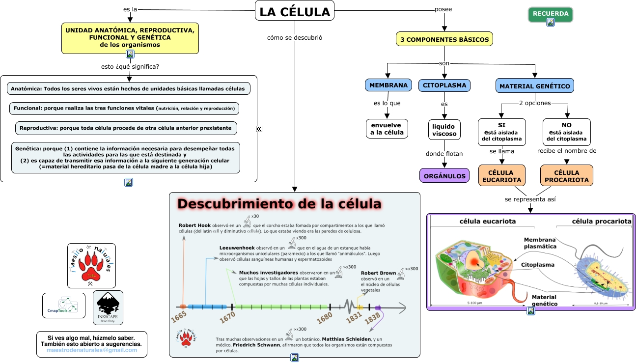 Este Cmap, tiene información relacionada con: Resumen del Tema 01 La célula, unidad básica de la vida, 3 COMPONENTES BÁSICOS son MEMBRANA, líquido viscoso donde flotan ORGÁNULOS, LA CÉLULA posee 3 COMPONENTES BÁSICOS, CITOPLASMA es líquido viscoso, MATERIAL GENÉTICO 2 opciones SI está aislada del citoplasma, UNIDAD ANATÓMICA, REPRODUCTIVA, FUNCIONAL Y GENÉTICA de los organismos esto ¿qué significa? Anatómica: Todos los seres vivos están hechos de unidades básicas llamadas células, CÉLULA PROCARIOTA se representa así, 3 COMPONENTES BÁSICOS son MATERIAL GENÉTICO, NO está aislada del citoplasma recibe el nombre de CÉLULA PROCARIOTA, CÉLULA EUCARIOTA se representa así, LA CÉLULA es la UNIDAD ANATÓMICA, REPRODUCTIVA, FUNCIONAL Y GENÉTICA de los organismos, LA CÉLULA cómo se descubrió, SI está aislada del citoplasma se llama CÉLULA EUCARIOTA, MATERIAL GENÉTICO 2 opciones NO está aislada del citoplasma, MEMBRANA es lo que envuelve a la célula, 3 COMPONENTES BÁSICOS son CITOPLASMA