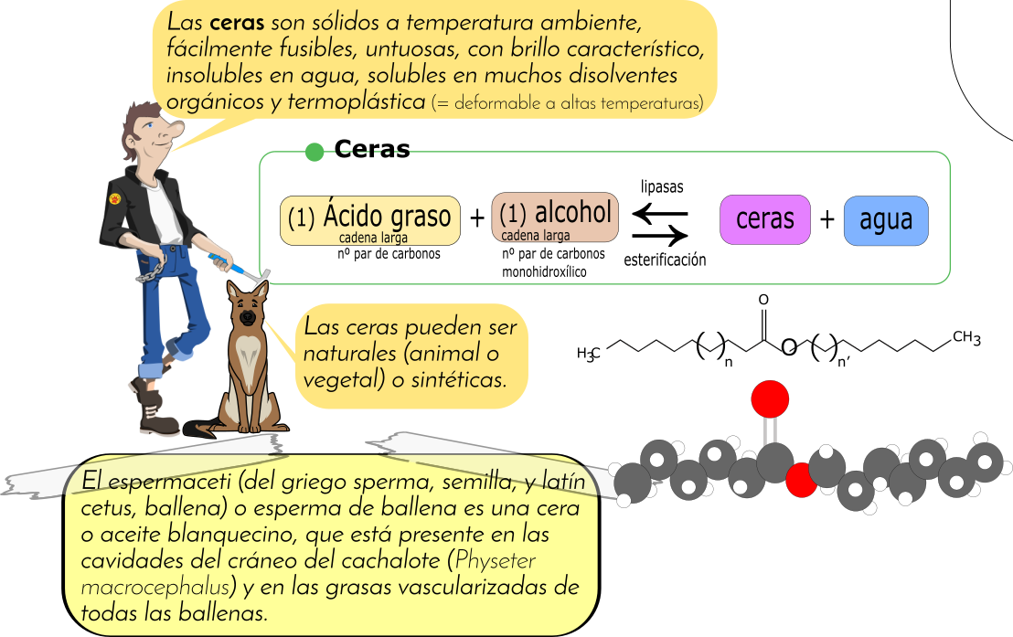 Este Cmap, tiene información relacionada con: 2.08.3 Lípidos derivados de los ácidos grasos, LÍPIDOS DERIVADOS de los ÁCIDOS GRASOS son CERAS, ???? gráficamente, CERAS fruto de REACCIÓN QUÍMICA de ESTERIFICACIÓN, ???? gráficamente, ÁCIDO ORGÁNICO (Ácido graso) y ALCOHOL, ÁCIDO ORGÁNICO (Ácido graso) que se caracteriza por · Cadena larga ·Nº par de carbonos, ???? gráficamente, REACCIÓN OXIDACIÓN entre ÁCIDO GRASOS ESENCIALES de 20 carbonos (tipo omega-3 y omega-6), REACCIÓN QUÍMICA de ESTERIFICACIÓN entre ÁCIDO ORGÁNICO (Ácido graso), ÁCIDO GRASOS ESENCIALES de 20 carbonos (tipo omega-3 y omega-6) y OXÍGENO (O2), ???? y se forma EICOSONOIDE, ÁCIDOS GRASOS de cadena larga que REACCIONAN con ALCOHOLES de cadena larga gráficamente, CERA (ÉSTER CARBOXÍLICO) Y AGUA, EICOSONOIDES fruto de la REACCIÓN OXIDACIÓN, ÁCIDOS GRASOS de cadena larga que REACCIONAN con ALCOHOLES de cadena larga reaccionan y forman CERA (ÉSTER CARBOXÍLICO), REACCIÓN QUÍMICA de ESTERIFICACIÓN entre ALCOHOL, LÍPIDOS DERIVADOS de los ÁCIDOS GRASOS son EICOSONOIDES, REACCIÓN OXIDACIÓN entre OXÍGENO (O2), ALCOHOL que se caracteriza por · Cadena larga · Nº par de carbonos · Monohidroxílico, REACCIÓN QUÍMICA de ESTERIFICACIÓN recuerda