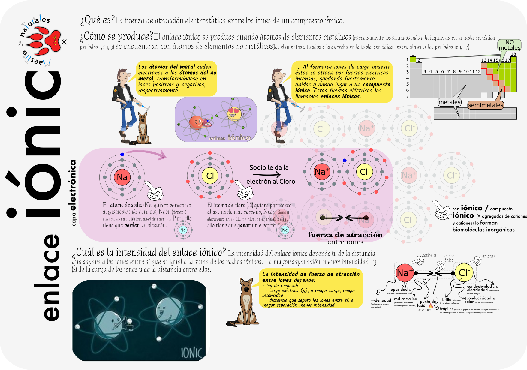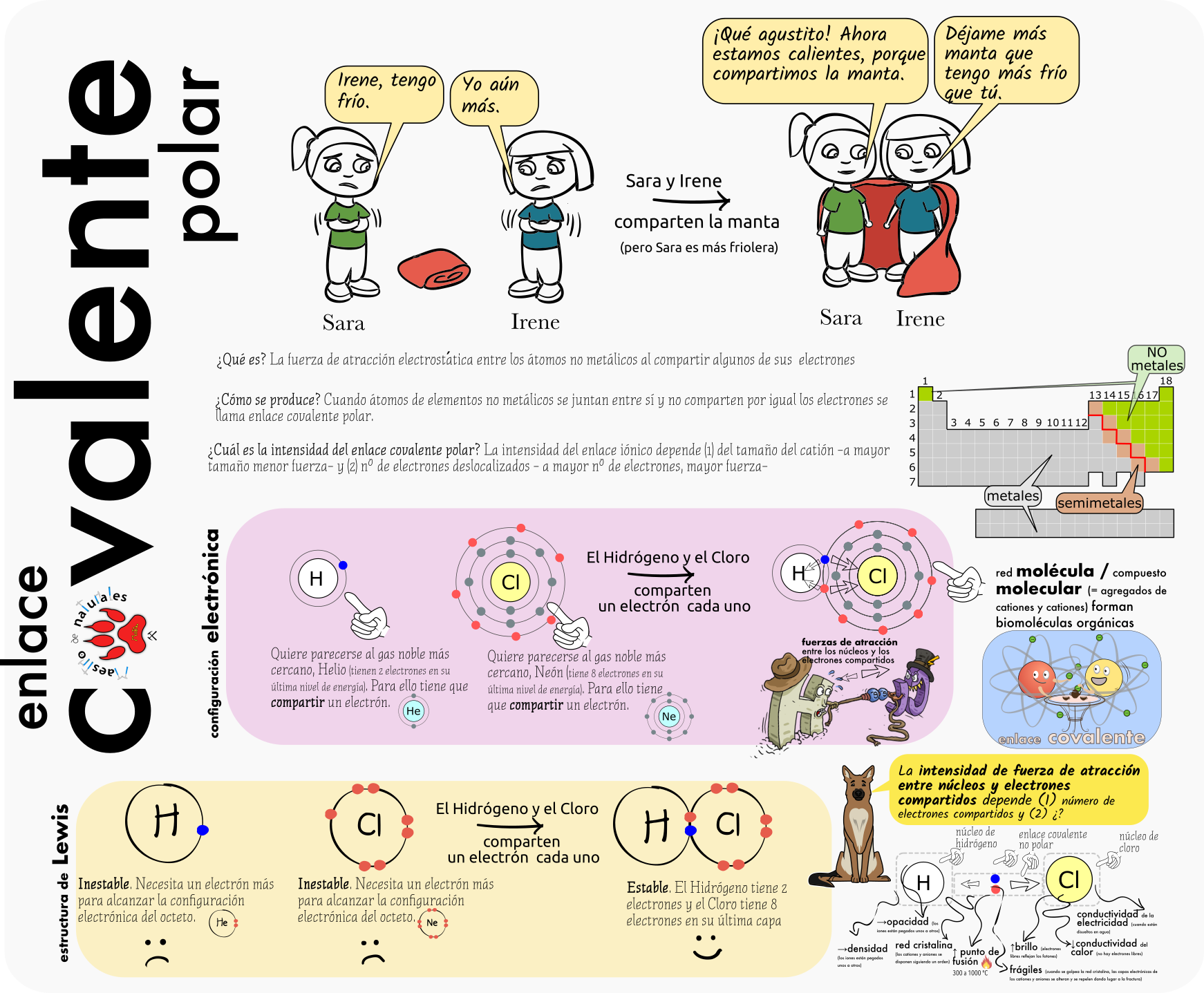 Este Cmap, tiene información relacionada con: 1.2 Los enlaces químicos, ENLACES QUÍMICOS son FUERZAS de ATRACCIÓN, MOLÉCULAS ENTRE SÍ - FUERZAS de ATRACCIÓN ELECTROSTÁTICA DÉBILES (=FUERZAS de VAN der WAALS), ELECTRONES al hacerlo IÓN POSITIVO (= catión), ÁTOMOS para FORMAR MOLÉCULAS hay DOS tipos f (tipo de átomo) ENLACES IÓNICOS (NO METAL + METAL), MOLÉCULAS (BIOMOLÉCULAS) son PROTEÍNAS, FUERZAS de PUENTE SALINO si interviene AGUA, MATERIA VIVA (materia inorgánica vs. materia orgánica) está formada por ÁTOMOS (BIOLEMENTOS), ELECTRONES al hacerlo IÓN NEGATIVO (= anión), REPARTIR ELECTRONES (= unos dan y otros reciben) donde METAL, SALES MINERALES se encuentran en DISOLUCIONES (disociadas en iones), DISOLUCIONES (disociadas en iones) e.g Na+, Cl-, DESIGUAL ocurre cuando se unen ÁTOMOS DIFERENTE ELECTRONEGATIVIDAD *, MATERIA (materia inorgánica vs. materia orgánica) se caracteriza por TENER MASA, DIPOLOS e.g, MOLÉCULAS NEUTRAS pero que presentan DIPOLOS INSTANTÁNEOS, COMPARTIR ELECTRONES ¿cómo se comparte?, pues de manera ... IGUAL, MOLÉCULAS (BIOMOLÉCULAS) son ÁCIDOS NUCLEICOS, ENLACES INTERMOLECULARES (= enlaces entre moléculas) es la unión de MOLÉCULAS ENTRE SÍ, FUERZAS de INTERACCIÓN HIDROFÓBICAS son FUERZAS DE COHESIÓN entre MOLÉCULAS, FUERZAS DE COHESIÓN entre MOLÉCULAS esto permite formar SUPRAMOLÉCULAS (e.g membrana plasmática)