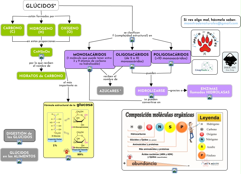 Este Cmap, tiene información relacionada con: Tema 01.02.01 Glúcidos, GLÚCIDOS* están formados por HIDRÓGENO (H), OLIGOSACÁRIDOS (de 2 a 10 monosacáridos) reciben el nombre de AZÚCARES *, HIDROLIZARSE i.e pueden convertirse en MONOSACÁRIDOS (1 molécula que puede tener entre 3 y 9 átomos de carbono no hidrolizable), POLIGOSACÁRIDOS (ᡂ monosacáridos) pueden HIDROLIZARSE, MONOSACÁRIDOS (1 molécula que puede tener entre 3 y 9 átomos de carbono no hidrolizable) reciben el nombre de AZÚCARES *, GLÚCIDOS* se clasifican f (complejidad estructural) en MONOSACÁRIDOS (1 molécula que puede tener entre 3 y 9 átomos de carbono no hidrolizable), GLÚCIDOS* están formados por OXÍGENO (O), CARBONO (C) en estas proporciones CnH2nOn, OLIGOSACÁRIDOS (de 2 a 10 monosacáridos) pueden HIDROLIZARSE, HIDRÓGENO (H) en estas proporciones CnH2nOn, OXÍGENO (O) en estas proporciones CnH2nOn, HIDROLIZARSE gracias a ENZIMAS llamadas HIDROLASAS, GLÚCIDOS* se clasifican f (complejidad estructural) en POLIGOSACÁRIDOS (ᡂ monosacáridos), GLÚCIDOS* se clasifican f (complejidad estructural) en OLIGOSACÁRIDOS (de 2 a 10 monosacáridos), CnH2nOn por lo que reciben el nombre de HIDRATOS de CARBONO, MONOSACÁRIDOS (1 molécula que puede tener entre 3 y 9 átomos de carbono no hidrolizable) el más importante es, GLÚCIDOS* están formados por CARBONO (C)