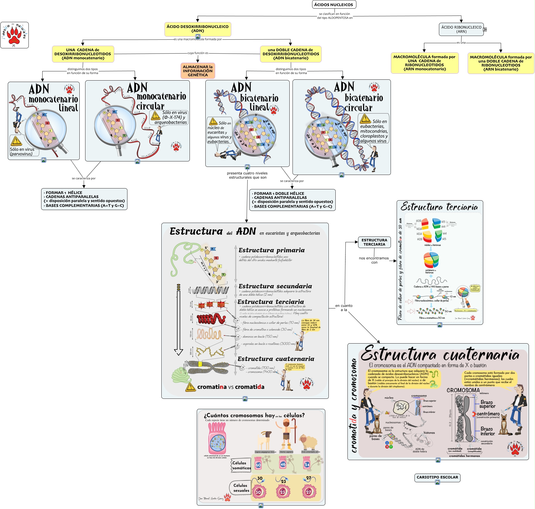 Este Cmap, tiene información relacionada con: 04.05.02 Estructura terciaria y cuaternaria, ???? se caracteriza por · FORMAR 1 DOBLE HÉLICE · CADENAS ANTIPARALELAS (= disposición paralela y sentido opuestos) · BASES COMPLEMENTARIAS (A=U y G≡C), ÁCIDOS NUCLEICOS se clasifican en función del tipo ALDOPENTOSA en ÁCIDO DESOXIRRIBONUCLEICO (ADN), UNA CADENA de DESOXIRRIBONUCLEOTIDOS (ADN monocatenario) cuya función es ALMACENAR la INFORMACIÓN GENÉTICA, ÁCIDO DESOXIRRIBONUCLEICO (ADN) es una macromolécula formada por una DOBLE CADENA de DESOXIRRIBONUCLEOTIDOS (ADN bicatenario), se caracteriza por · FORMAR 1 DOBLE HÉLICE · CADENAS ANTIPARALELAS (= disposición paralela y sentido opuestos) · BASES COMPLEMENTARIAS (A=T y G≡C), UNA CADENA de DESOXIRRIBONUCLEOTIDOS (ADN monocatenario) distinguimos dos tipos en función de su forma, una DOBLE CADENA de RIBONUCLEOTIDOS (ARN bicatenario) con función ... · ALMACENAR INFORMACIÓN GENÉTICA BIOCATALIZADORA ·FABRICAR PROTEÍNAS, una DOBLE CADENA de RIBONUCLEOTIDOS (ARN bicatenario) distinguimos dos tipos en función de su forma, ÁCIDOS NUCLEICOS se clasifican en función del tipo ALDOPENTOSA en ÁCIDO RIBONUCLEICO (ARN), se caracteriza por · FORMAR 1 HÉLICE · BASES son A,U, G y C, una DOBLE CADENA de DESOXIRRIBONUCLEOTIDOS (ADN bicatenario) distinguimos dos tipos en función de su forma, ÁCIDO RIBONUCLEICO (ARN) es una MACROMOLÉCULA formada por una DOBLE CADENA de RIBONUCLEOTIDOS (ARN bicatenario), en cuanto a la, ÁCIDO RIBONUCLEICO (ARN) es una DOBLE CADENA de RIBONUCLEOTIDOS (ARN bicatenario), una DOBLE CADENA de DESOXIRRIBONUCLEOTIDOS (ADN bicatenario) cuya función es ALMACENAR la INFORMACIÓN GENÉTICA, UNA CADENA de RIBONUCLEOTIDOS (ARN monocatenario) distinguimos dos tipos en función de su forma, una DOBLE CADENA de RIBONUCLEOTIDOS (ARN bicatenario) distinguimos dos tipos en función de su forma ????, ÁCIDO RIBONUCLEICO (ARN) es una MACROMOLÉCULA formada por UNA CADENA de RIBONUCLEOTIDOS (ARN monocatenario), ÁCIDO RIBONUCLEICO (ARN) es UNA CADENA de RIBONUCLEOTIDOS (ARN monocatenario), presenta cuatro niveles estructurales que son