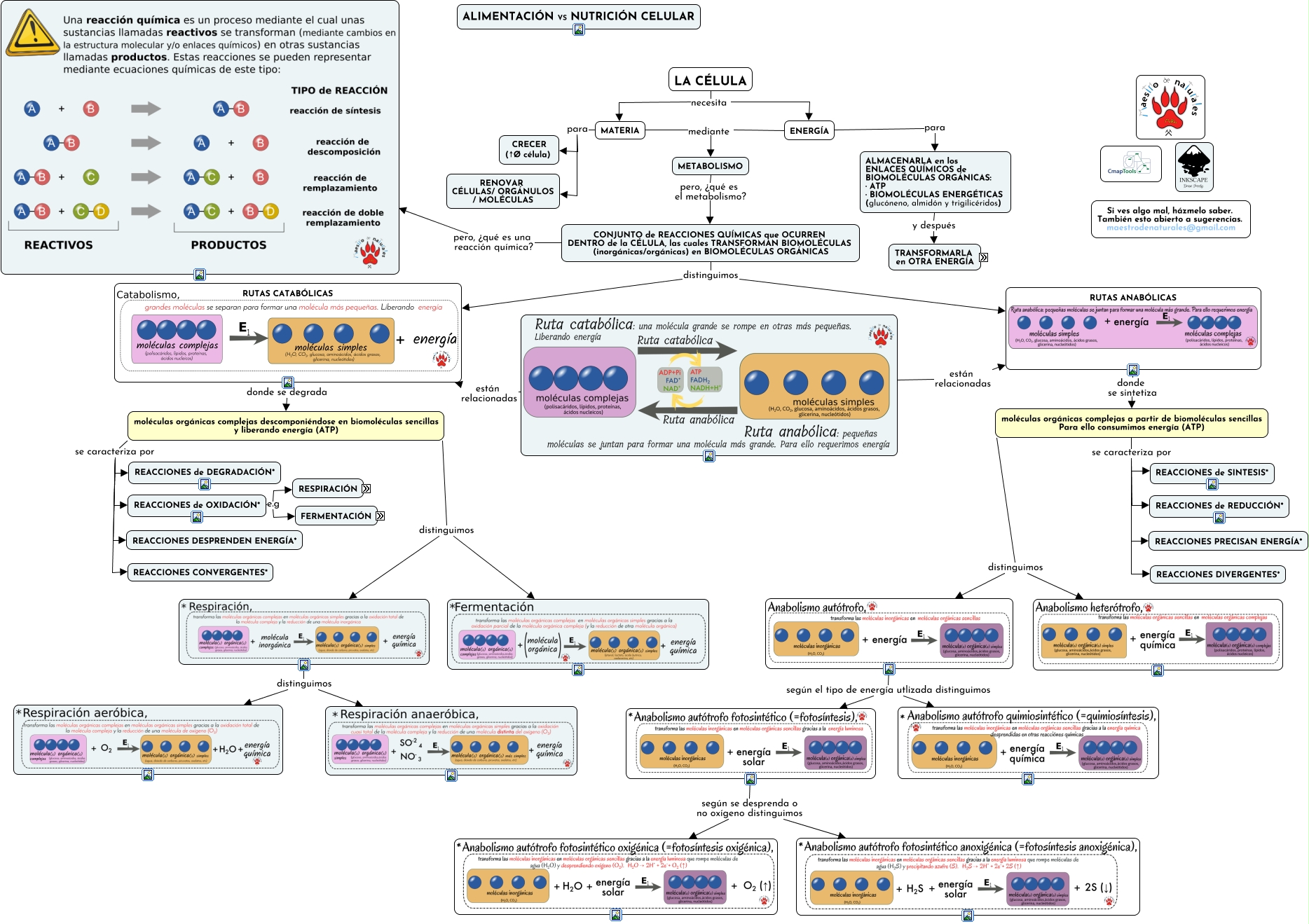 Este Cmap, tiene información relacionada con: Tema 08.01.00 Qué es el metabolismo, moléculas orgánicas complejas a partir de biomoléculas sencillas Para ello consumimos energía (ATP) distinguimos, según el tipo de energía utlizada distinguimos, distinguimos, moléculas orgánicas complejas a partir de biomoléculas sencillas Para ello consumimos energía (ATP) se caracteriza por REACCIONES DIVERGENTES*, MATERIA para RENOVAR CÉLULAS/ ORGÁNULOS / MOLÉCULAS, REACCIONES de OXIDACIÓN* e.g FERMENTACIÓN, moléculas orgánicas complejas a partir de biomoléculas sencillas Para ello consumimos energía (ATP) se caracteriza por REACCIONES PRECISAN ENERGÍA*, ENERGÍA QUÍMICA (almacenada en los enlaces químicos) se puede transformar en ENERGÍA CALORÍFICA (mantener tª constante del cuerpo), moléculas orgánicas complejas a partir de biomoléculas sencillas Para ello consumimos energía (ATP) se caracteriza por REACCIONES de REDUCCIÓN*, REACCIONES de OXIDACIÓN* e.g RESPIRACIÓN, RUTAS ANABÓLICAS donde se sintetiza moléculas orgánicas complejas a partir de biomoléculas sencillas Para ello consumimos energía (ATP), distinguimos, RESPIRACIÓN AERÓBICA donde el aceptor final de electrones es el O2, moléculas orgánicas complejas a partir de biomoléculas sencillas Para ello consumimos energía (ATP) distinguimos, CONJUNTO de REACCIONES QUÍMICAS que OCURREN DENTRO de la CÉLULA, las cuales TRANSFORMAN BIOMOLÉCULAS (inorgánicas/orgánicas) en BIOMOLÉCULAS ORGÁNICAS distinguimos RUTAS CATABÓLICAS, moléculas orgánicas complejas descomponiéndose en biomoléculas sencillas y liberando energía (ATP) distinguimos, MATERIA para CRECER (↑Ø célula), están relacionadas RUTAS CATABÓLICAS, MATERIA mediante METABOLISMO, CONJUNTO de REACCIONES QUÍMICAS que OCURREN DENTRO de la CÉLULA, las cuales TRANSFORMAN BIOMOLÉCULAS (inorgánicas/orgánicas) en BIOMOLÉCULAS ORGÁNICAS pero, ¿qué es una reacción química?