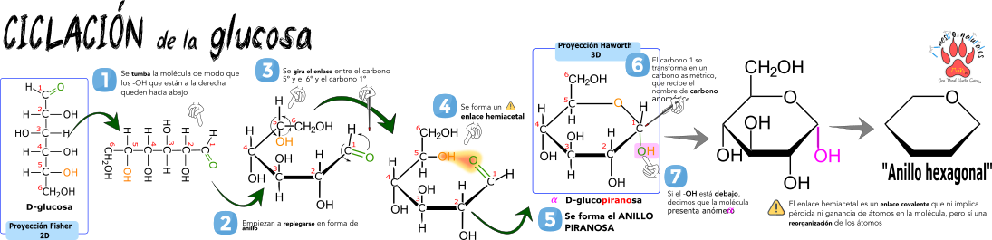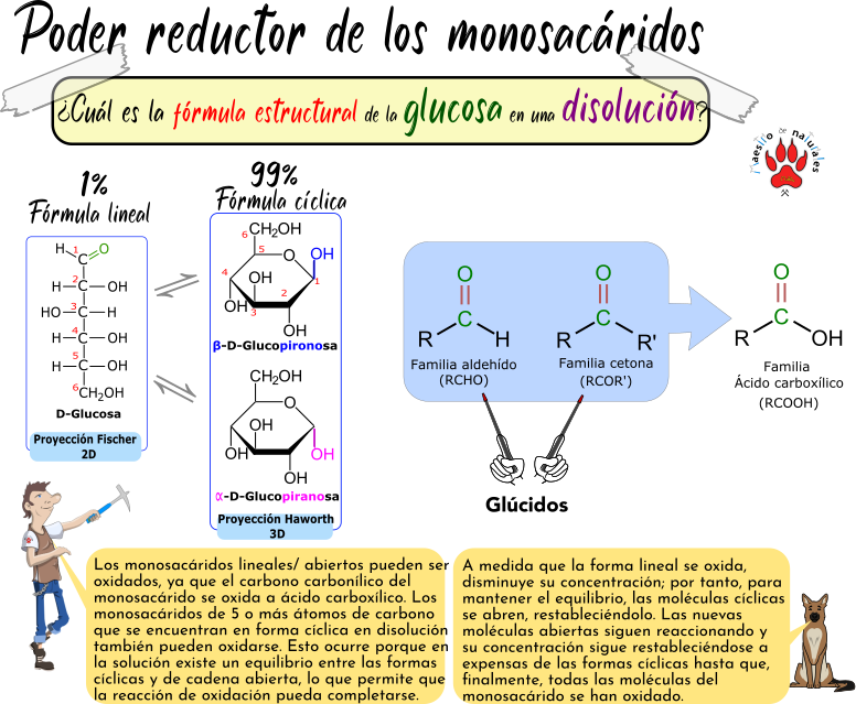 Este Cmap, tiene información relacionada con: 2.2.2 Propiedades químicas de los monosacáridos, CICLACIÓN de los MONOSACÁRIDOS e.g, OXIDACIÓN (= pérdida de electrones) significa PÉRDIDA de HIDRÓGENO -en la molécula-, PROCESO QUÍMICO que consiste en INTERCAMBIO de ELECTRONES, INTERCAMBIO de ELECTRONES hay dos maneras no excluyentes OXIDACIÓN (= pérdida de electrones), ojo a la NOMENCLATURA, PROPIEDADES QUÍMICAS de los MONOSACÁRIDOS como la CAPACIDAD de ASOCIARSE a GRUPOS FOSFATO (-H2PO4), PROPIEDADES QUÍMICAS de los MONOSACÁRIDOS como la FORMAR ENLACES HEMIACETÁLICOS (enlaces covalentes intramoleculares entre el grupo carbonilo y -OH del penúltimo carbono), PROPIEDADES QUÍMICAS de los MONOSACÁRIDOS como la CAPACIDAD de ASOCIARSE a GRUPOS SULFATO (-H2SO4), CICLACIÓN de los MONOSACÁRIDOS e.g, MONOSACÁRIDOS CETOSAS de ≥ 6 ÁTOMOS de CARBONO forman ANILLOS (cadena cerrada), CON FACILIDAD con los ALCOHOLES (-OH) formando HEMIACETALES (compuestos orgánicos con un grupo alcohol (-OH) y un grupo alcoloxi ( -OR), ANILLO de PIRANOSA (recuerda a un pirano) aparece un NUEVO CARBONO ASIMÉTRICO (= carbono anomérico), CAPACIDAD de OXIDARSE (= perder electrones) se conoce como EL PODER REDUCTOR de los MONOSACÁRIDOS, NUEVO CARBONO ASIMÉTRICO (= carbono anomérico) que da origen a DOS NUEVOS EPÍMEROS (= ANÓMEROS), 6 VÉRTICES llamado ANILLO de PIRANOSA (recuerda a un pirano), PROPIEDADES QUÍMICAS de los MONOSACÁRIDOS como la CAPACIDAD de OXIDARSE (= perder electrones), DOS NUEVOS EPÍMEROS (= ANÓMEROS) establece dos nuevoas alternativas ANÓMERO ALFA ( el OH del carbono anomérico hacia abajo), REDUCCIÓN (= ganancia de electrones) significa GANANCIA de HIDRÓGENO -en la molécula-, NOMENCLATURA pues todo monosacárido debe incluir · TIPO DE FORMAR ANOMÉRICA (ALFA O BETA) · EL TIPO DE ENAÁNTIÓMERO (D o L) · EL NOMBRE de la MOLÉCULA · EL TIPO DE CICLO (FURANOSA o PIRANOSA), PROPIEDADES QUÍMICAS de los MONOSACÁRIDOS como la CAPACIDAD de AMINARSE (asociarse a grupos amino (-NH2))