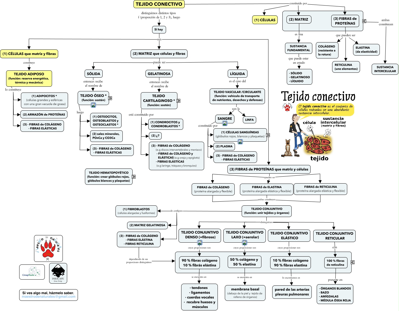 Este Cmap, tiene información relacionada con: Tema 03.04.01 Tejidos conectivos, TEJIDO ADIPOSO (función: reserva energética, térmica y mecánica) lo constituye (2) ARMAZÓN de PROTEÍNAS, Si hay más (1) CÉLULAS que matriz y fibras, TEJIDO LINFOIDE es GRUPO de CÉLULAS ENCARGADAS de la MADURACIÓN/DIFERENCIACIÓN de los LINFOCITOS (un tipo de glóbulos blancos), (1) CÉLULAS que matriz y fibras constituye TEJIDO ADIPOSO (función: reserva energética, térmica y mecánica), CÉLULAS con FORMA de DISCO BICONCAVO SIN: · NÚCLEO · MITOCONDRIAS · otros ORGÁNULOS cuya función es · TRANSPORTAR OXÍGENO y DIÓXIDO de CARBONO, GRANULOCITOS distinguimos NEUTRÓFILOS, SANGRE constituido por (2) PLASMA, TEJIDO CARTILAGINOSO se clasifica f ( tipo de fibra) CARTILAGINOSO FIBROSO (fibras > matriz > células), (3) · FIBRAS de COLÁGENO · FIBRAS ELÁSTINA · FIBRAS RETICULINA dependiendo de sus proporciones distinguimos ????, (3) FIBRAS de PROTEÍNAS que pueden ser ELASTINA (da elasticidad), (3) FIBRAS de PROTEÍNAS que matriz y células pueden ser FIBRAS de RETICULINA (proteína alargada elástica y flexible), TEJIDO CONJUNTIVO (función: unir tejidos y órganos) lo configura (2) MATRIZ GELATINOSA, FIBRAS de ELASTINA (proteína alargada elástica y flexible) ambas constituyen TEJIDO CONJUNTIVO (función: unir tejidos y órganos), Si hay más (2) MATRIZ que células y fibras, TEJIDO CONECTIVO constituido por (2) MATRIZ, SÓLIDA entonces recibe el nombre de TEJIDO ÓSEO * (función: sostén), BAZO su función es ·DESTRUIR GLÓBULOS ROJOS DEFECTUOSOS · RESERVA de GLÓBULOS ROJOS · FABRICAR ANTICUERPOS, TEJIDO CARTILAGINOSO se clasifica f ( tipo de fibra) CARTILAGINOSO HIALINO (matriz >células>fibras), GLÓBULOS ROJOS (eritrocitos o hematíes) son CÉLULAS con FORMA de DISCO BICONCAVO SIN: · NÚCLEO · MITOCONDRIAS · otros ORGÁNULOS, (2) MATRIZ es una SUSTANCIA FUNDAMENTAL
