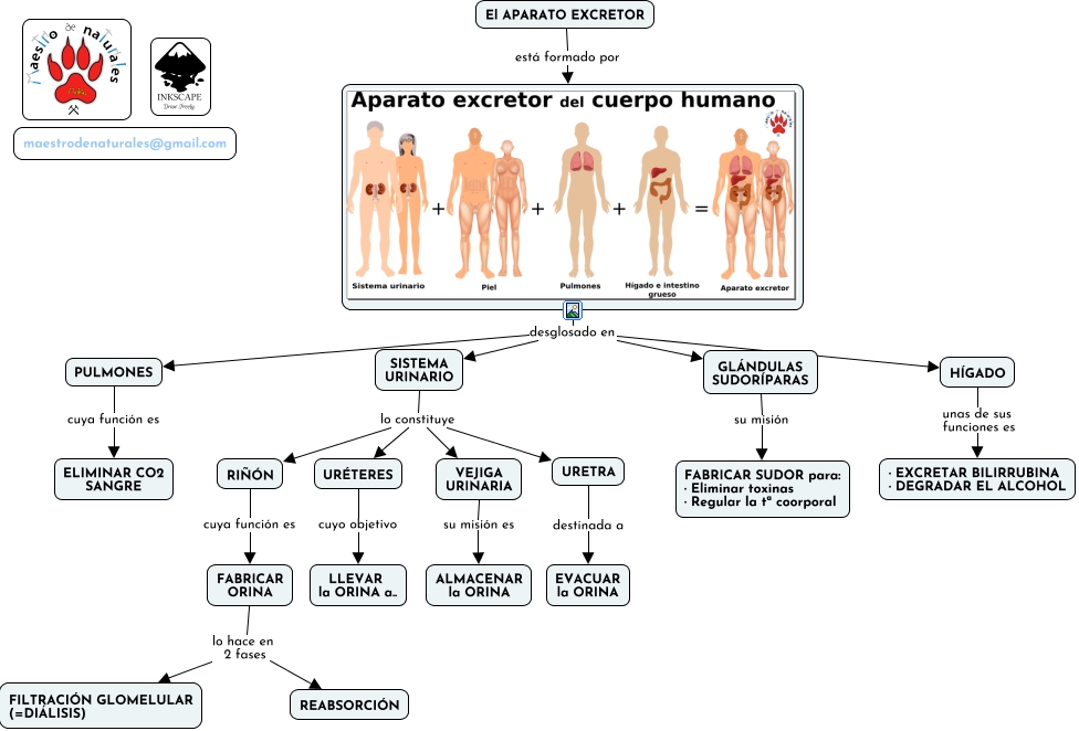 Este Cmap, tiene información relacionada con: 5.02.00 El aparato excretor, desglosado en GLÁNDULAS SUDORÍPARAS, SISTEMA URINARIO lo constituye VEJIGA URINARIA, RIÑÓN cuya función es FABRICAR ORINA, URÉTERES cuyo objetivo LLEVAR la ORINA a.., SISTEMA URINARIO lo constituye URETRA, HÍGADO unas de sus funciones es · EXCRETAR BILIRRUBINA · DEGRADAR EL ALCOHOL, desglosado en HÍGADO, desglosado en PULMONES, FABRICAR ORINA lo hace en 2 fases FILTRACIÓN GLOMELULAR (=DIÁLISIS), El APARATO EXCRETOR está formado por, FABRICAR ORINA lo hace en 2 fases REABSORCIÓN, VEJIGA URINARIA su misión es ALMACENAR la ORINA, SISTEMA URINARIO lo constituye RIÑÓN, PULMONES cuya función es ELIMINAR CO2 SANGRE, desglosado en SISTEMA URINARIO, URETRA destinada a EVACUAR la ORINA, SISTEMA URINARIO lo constituye URÉTERES, GLÁNDULAS SUDORÍPARAS su misión FABRICAR SUDOR para: · Eliminar toxinas · Regular la tª coorporal