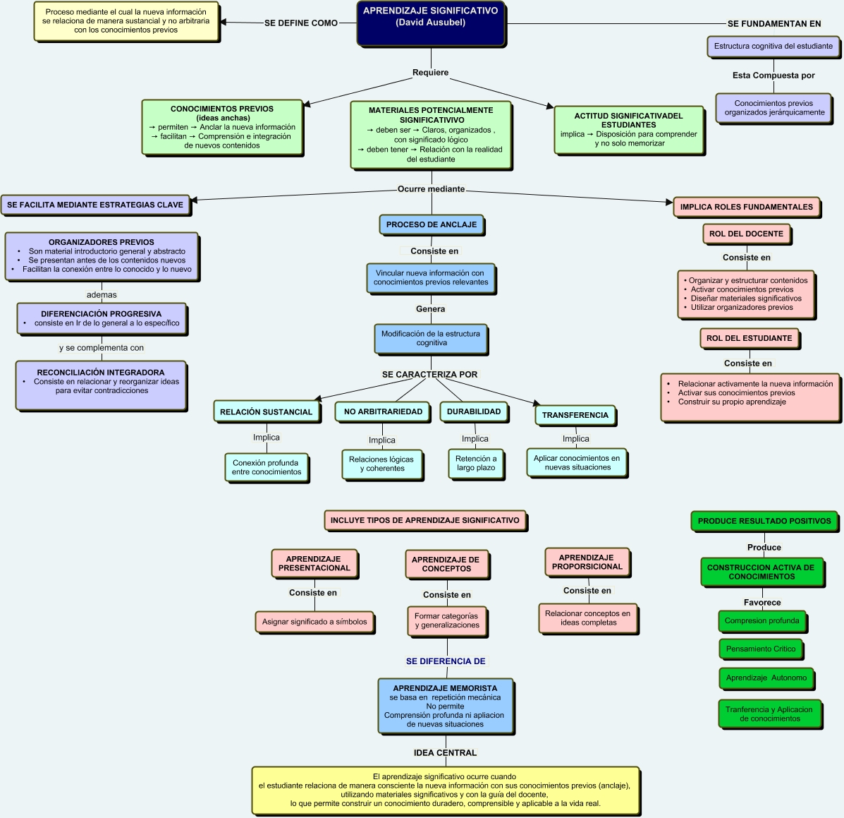 Este Cmap, tiene información relacionada con: LIZBETH, ROL DEL ESTUDIANTE Consiste en • Relacionar activamente la nueva información • Activar sus conocimientos previos • Construir su propio aprendizaje, Modificación de la estructura cognitiva SE CARACTERIZA POR TRANSFERENCIA, TRANSFERENCIA Implica Aplicar conocimientos en nuevas situaciones, MATERIALES POTENCIALMENTE SIGNIFICATIVIVO → deben ser → Claros, organizados , con significado lógico → deben tener → Relación con la realidad del estudiante Ocurre mediante IMPLICA ROLES FUNDAMENTALES, APRENDIZAJE SIGNIFICATIVO (David Ausubel) Requiere CONOCIMIENTOS PREVIOS (ideas anchas) → permiten → Anclar la nueva información → facilitan → Comprensión e integración de nuevos contenidos, APRENDIZAJE SIGNIFICATIVO (David Ausubel) SE DEFINE COMO Proceso mediante el cual la nueva información se relaciona de manera sustancial y no arbitraria con los conocimientos previos, APRENDIZAJE PROPORSICIONAL Consiste en Relacionar conceptos en ideas completas, Estructura cognitiva del estudiante Esta Compuesta por Conocimientos previos organizados jerárquicamente, RELACIÓN SUSTANCIAL Implica Conexión profunda entre conocimientos, APRENDIZAJE SIGNIFICATIVO (David Ausubel) SE FUNDAMENTAN EN Estructura cognitiva del estudiante, PROCESO DE ANCLAJE Consiste en Vincular nueva información con conocimientos previos relevantes, ORGANIZADORES PREVIOS • Son material introductorio general y abstracto • Se presentan antes de los contenidos nuevos • Facilitan la conexión entre lo conocido y lo nuevo ademas DIFERENCIACIÓN PROGRESIVA • consiste en Ir de lo general a lo específico, APRENDIZAJE SIGNIFICATIVO (David Ausubel) Requiere ACTITUD SIGNIFICATIVADEL ESTUDIANTES implica → Disposición para comprender y no solo memorizar, APRENDIZAJE PRESENTACIONAL Consiste en Asignar significado a símbolos, Modificación de la estructura cognitiva SE CARACTERIZA POR RELACIÓN SUSTANCIAL, NO ARBITRARIEDAD Implica Relaciones lógicas y coherentes, CONSTRUCCION ACTIVA DE CONOCIMIENTOS Favorece Compresion profunda, APRENDIZAJE MEMORISTA se basa en repetición mecánica No permite Comprensión profunda ni apliacion de nuevas situaciones IDEA CENTRAL El aprendizaje significativo ocurre cuando el estudiante relaciona de manera consciente la nueva información con sus conocimientos previos (anclaje), utilizando materiales significativos y con la guía del docente, lo que permite construir un conocimiento duradero, comprensible y aplicable a la vida real., PRODUCE RESULTADO POSITIVOS Produce CONSTRUCCION ACTIVA DE CONOCIMIENTOS, Formar categorías y generalizaciones SE DIFERENCIA DE APRENDIZAJE MEMORISTA se basa en repetición mecánica No permite Comprensión profunda ni apliacion de nuevas situaciones