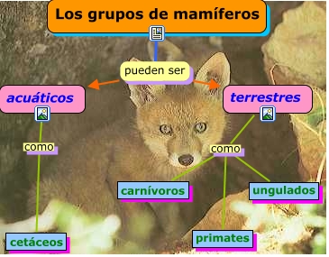 Este mapa conceptual tiene información relacionada a: mamiferos, Los grupos de mamíferos pueden ser acuáticos, terrestres como ungulados, Los grupos de mamíferos pueden ser terrestres, terrestres como carnívoros, acuáticos como cetáceos, terrestres como primates
