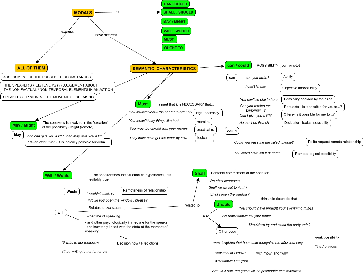 Den här kartan innehåller information om: Modal Verbs, SEMANTIC CHARACTERISTICS ???? May / Might, will ???? Decision now / Predictions, MODALS have different SEMANTIC CHARACTERISTICS, MODALS are SHALL / SHOULD, will related to Shall, MODALS express ALL OF THEM, Should also Other uses, SEMANTIC CHARACTERISTICS ???? can / could, SEMANTIC CHARACTERISTICS ???? Will / Would, will ???? Decision now / Predictions