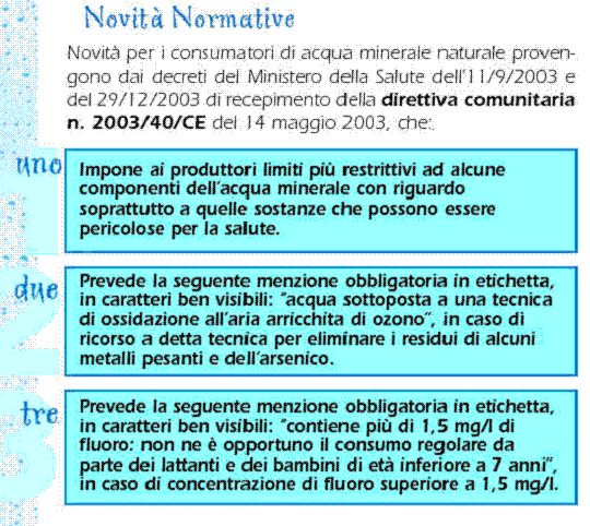 Este Cmap, tiene información relacionada con: acqueminerali, precauzioni tra cui conservazione al riparo della luce, precauzioni tra cui pretendere confezione sigillata, nella scelta dell'acqua minerale si deve tener conto di indicazioni in etichetta, contenuto dei sali minerali determina gli effetti che sono lassativi (solfati > 200 mg/l), nella scelta dell'acqua minerale si deve tener conto di novità normative, residuo fisso determina se è oligominerale, residuo fisso determina se è ricca di sali minerali, nella scelta dell'acqua minerale si deve tener conto di residuo fisso, contenuto dei sali minerali determina gli effetti che sono digestivi (CO2 > 600 mg/l), nella scelta dell'acqua minerale si deve tener conto di valori massimi ammissibili, indicazioni in etichetta confrontando terminologia e avverimenti, consigli d'uso adottando le seguenti precauzioni, residuo fisso determina se è mediominerale, oligominerale ???? ????, residuo fisso determina se è minimamente mineralizzata, nella scelta dell'acqua minerale si deve tener conto di contenuto dei sali minerali, precauzioni tra cui capovolgere e agitare la bottiglia, nella scelta dell'acqua minerale si deve tener conto di consigli d'uso