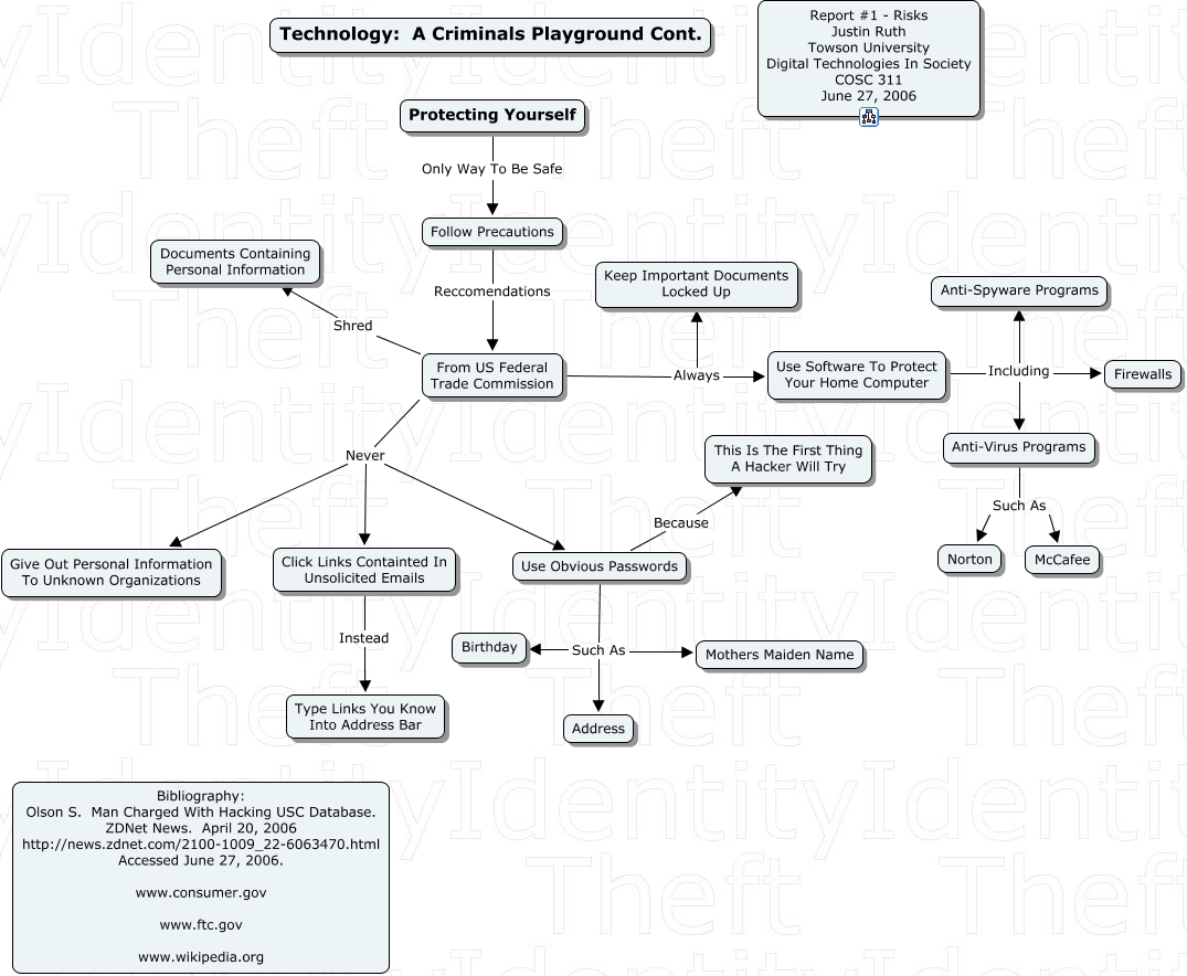 Protecting Yourself, Anti-Virus Programs Such As Norton, Use Software To Protect Your Home Computer Including Anti-Spyware Programs, Click Links Containted In Unsolicited Emails Instead Type Links You Know Into Address Bar, From US Federal Trade Commission Always Use Software To Protect Your Home Computer, From US Federal Trade Commission Never Give Out Personal Information To Unknown Organizations, From US Federal Trade Commission Always Keep Important Documents Locked Up, Use Obvious Passwords Because This Is The First Thing A Hacker Will Try, Use Obvious Passwords Such As Mothers Maiden Name, Use Obvious Passwords Such As Birthday, Use Software To Protect Your Home Computer Including Anti-Virus Programs