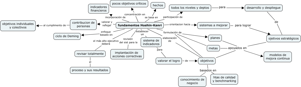 fundamentos Hoshin-kanri, objetivos apoyados en modelos de mejora continua, planes apoyados en modelos de mejora continua, objetivos basados en htas de calidad y benchmarking, desarrollo y despliegue de ojetivos estratégicos, fundamentos Hoshin-Kanri formulación de objetivos, fundamentos Hoshin-Kanri participación de todos los niveles y deptos, valorar el logro de objetivos, ojetivos estratégicos apoyados en modelos de mejora continua, todos los niveles y deptos para desarrollo y despliegue, contribucion de personas al cumplimento de objetivos individuales y colectivos