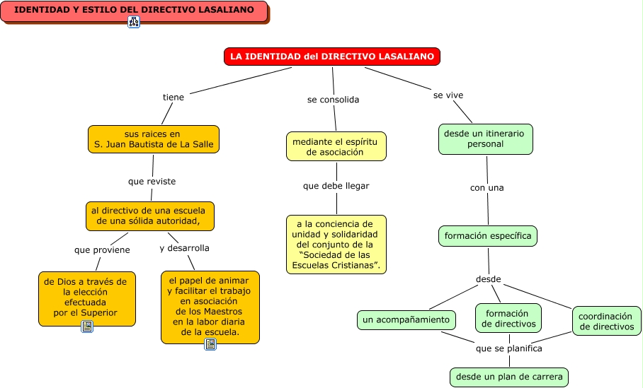 Identidad y estilo del directivo lasaliano II, mediante el espíritu de asociación que debe llegar a la conciencia de unidad y solidaridad del conjunto de la “Sociedad de las Escuelas Cristianas”., formación específica desde un acompañamiento, al directivo de una escuela de una sólida autoridad, que proviene de Dios a través de la elección efectuada por el Superior, coordinación de directivos que se planifica desde un plan de carrera, formación de directivos que se planifica desde un plan de carrera, formación específica desde coordinación de directivos, formación específica desde formación de directivos, desde un itinerario personal con una formación específica, LA IDENTIDAD del DIRECTIVO LASALIANO se consolida mediante el espíritu de asociación, LA IDENTIDAD del DIRECTIVO LASALIANO se vive desde un itinerario personal