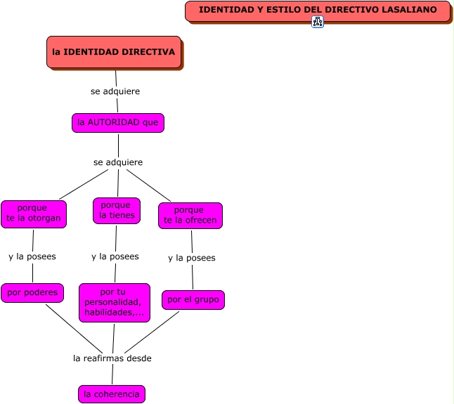 Identidad y estilo del directivo lasaliano I bis, por el grupo la reafirmas desde la coherencia, por tu personalidad, habilidades,... la reafirmas desde la coherencia, porque la tienes y la posees por tu personalidad, habilidades,..., por poderes la reafirmas desde la coherencia, la IDENTIDAD DIRECTIVA se adquiere la AUTORIDAD que, porque te la ofrecen y la posees por el grupo, la AUTORIDAD que se adquiere porque te la ofrecen, la AUTORIDAD que se adquiere porque la tienes, porque te la otorgan y la posees por poderes, la AUTORIDAD que se adquiere porque te la otorgan