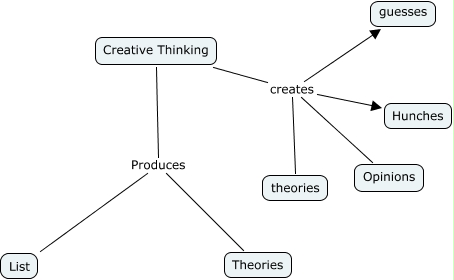 Creative Thinking, Creative Thinking creates Hunches, Creative Thinking Produces Theories, Creative Thinking creates Opinions, Creative Thinking creates guesses, Creative Thinking creates theories, Creative Thinking Produces List