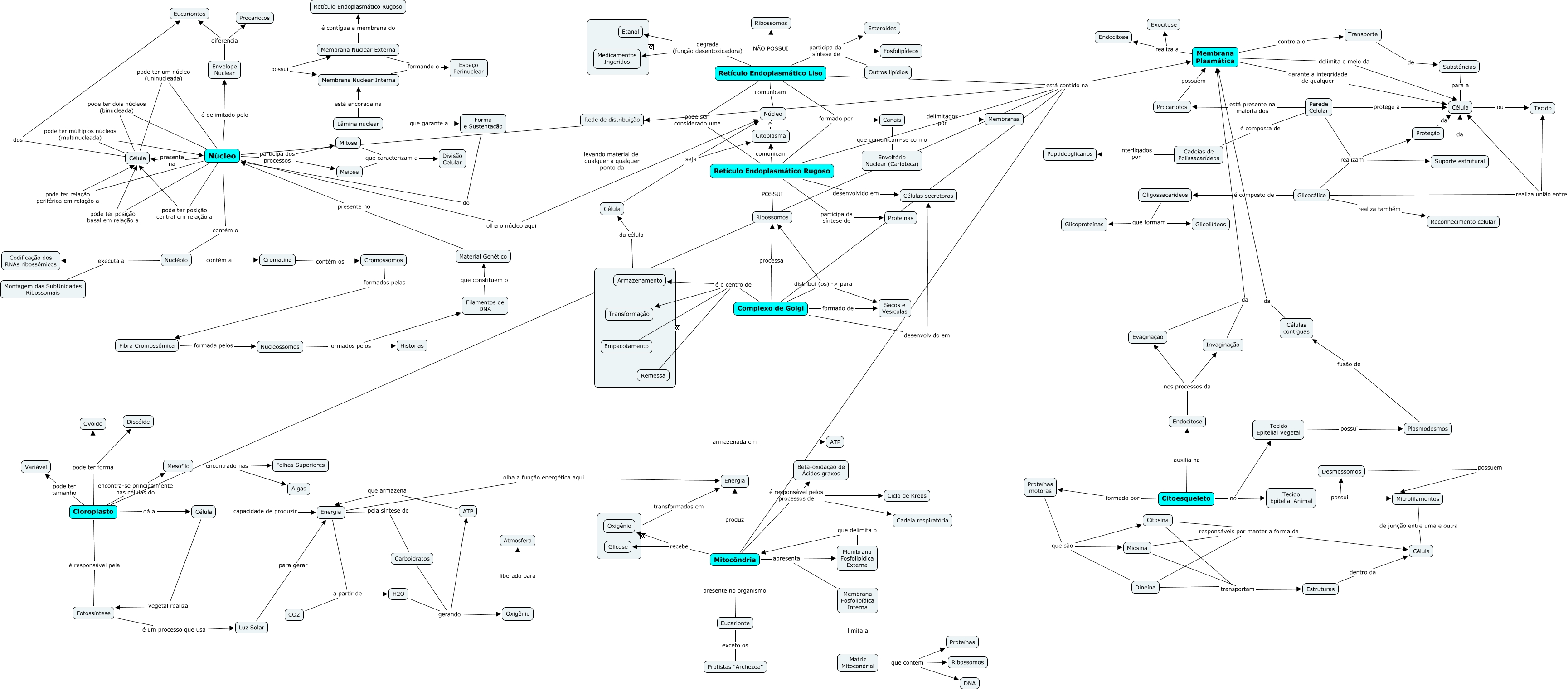 Organelas e estrutura da célula - Visão completa, Complexo de Golgi processa Ribossomos, Retículo Endoplasmático Liso pode ser considerado uma Rede de distribuição, Mitocôndria apresenta Membrana Fosfolipídica Externa, Tecido Epitelial Animal possui Microfilamentos, Retículo Endoplasmático Liso degrada (função desentoxicadora) Medicamentos Ingeridos, Eucarionte exceto os Protistas "Archezoa", Canais que comunicam-se com o Envoltório Nuclear (Carioteca), Lâmina nuclear está ancorada na Membrana Nuclear Interna, Citosina responsáveis por manter a forma da Célula, Retículo Endoplasmático Liso participa da síntese de Esteróides