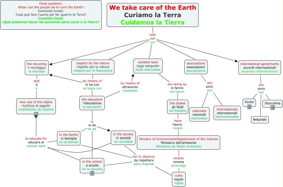curiamo la terra, in the family in famiglia en la familia to educate for educare al educar para new use of the objets riutilizzo di oggetti reutilización de objetos, rules regole reglas for to observe da rispettare para respetar in the school a scuola en la escuela, We take care of the Earth Curiamo la Terra Cuidamos la Tierra with con con suitable laws leggi adeguate leyes adecuadas, respect by the nature rispetto per la natura respeto por la Naturaleza by means of si ha con se logra con the recycling il riciclaggio el reciclaje, the education l'educazione la educación is si da se da in the family in famiglia en la familia, We take care of the Earth Curiamo la Terra Cuidamos la Tierra with con con associations associazioni asociaciones, the education l'educazione la educación by means of attraverso mediante suitable laws leggi adeguate leyes adecuadas, the education l'educazione la educación is si da se da in the society in società en sociedad, respect by the nature rispetto per la natura respeto por la Naturaleza by means of si ha con se logra con the education l'educazione la educación, Ministry of Environment/Department of the Interior Ministero dell'ambiente Ministerio de Medio Ambiente enacts emana promulga rules regole reglas