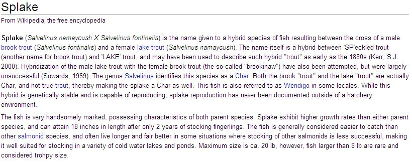 North American Char Family, North American Char Family include Lake Trout, Lake Trout will hybridize Splake, Bull Trout Sea Run Form Dolly Varden, North American Char Family are Salmo, Brown Trout will naturally hybridize Tiger Trout, Brook Trout will naturally hybridize Tiger Trout, North American Char Family include Arctic Char, Splake are Sterile, Bull Trout will cross ????, Early Settlers to replace Native Brook Trout
