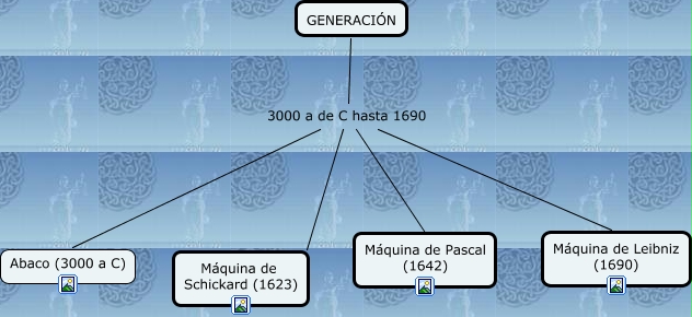 3000_1690, GENERACIÓN 3000 a de C hasta 1690 Abaco (3000 a C), GENERACIÓN 3000 a de C hasta 1690 Máquina de Leibniz (1690), GENERACIÓN 3000 a de C hasta 1690 Máquina de Pascal (1642), GENERACIÓN 3000 a de C hasta 1690 Máquina de Schickard (1623)