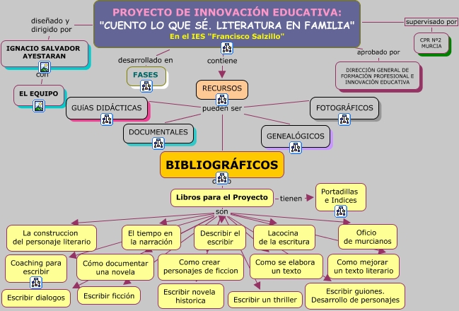 recursosbibliograficos, Libros para el Proyecto son Como se elabora un texto, Libros para el Proyecto son Escribir dialogos, PROYECTO DE INNOVACIÓN EDUCATIVA: "CUENTO LO QUE SÉ. LITERATURA EN FAMILIA" En el IES "Francisco Salzillo" desarrollado en FASES, RECURSOS pueden ser GUíAS DIDÁCTICAS, BIBLIOGRÁFICOS como Libros para el Proyecto, Libros para el Proyecto son Como mejorar un texto literario, Libros para el Proyecto son Oficio de murcianos, PROYECTO DE INNOVACIÓN EDUCATIVA: "CUENTO LO QUE SÉ. LITERATURA EN FAMILIA" En el IES "Francisco Salzillo" contiene RECURSOS, Libros para el Proyecto son Escribir novela historica, RECURSOS pueden ser BIBLIOGRÁFICOS