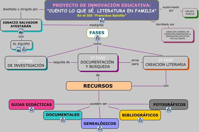 Tipos recursos, RECURSOS pueden ser FOTOGRÁFICOS, RECURSOS pueden ser DOCUMENTALES, FASES como 3ª FASE CREACION LITERARIA, RECURSOS pueden ser FOTOGRÁFICOS, IGNACIO SALVADOR AYESTARÁN con EL EQUIPO, RECURSOS pueden ser GUIAS DIDÁCTICAS, IGNACIO SALVADOR AYESTARÁN mediante FASES, PROYECTO DE INNOVACIÓN EDUCATIVA: "CUENTO LO QUE SÉ. LITERATURA EN FAMILIA" En el IES "Francisco Salzillo" Aprobado por DIRECCIÓN GENERAL DE FORMACIÓN PROFESIONAL E INNOVACIÓN EDUCATIVA (Murcia) España, FASES como 2ª FASE DOCUMENTACIÓN Y BUSQUEDA, PROYECTO DE INNOVACIÓN EDUCATIVA: "CUENTO LO QUE SÉ. LITERATURA EN FAMILIA" En el IES "Francisco Salzillo" supervisado por CPR Nº2 MURCIA