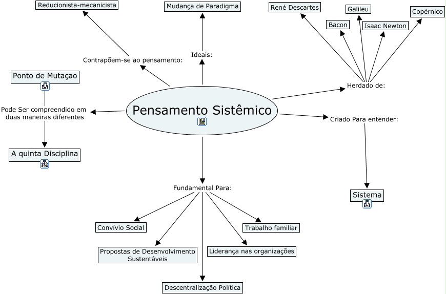 Este Mapa Conceitual tem informações relacionadas a: Pensamento Sistêmico, Pensamento Sistêmico Herdado de: René Descartes, Pensamento Sistêmico Herdado de: Bacon, Pensamento Sistêmico Fundamental Para: Liderança nas organizações, Pensamento Sistêmico Criado Para entender: Sistema, Pensamento Sistêmico Fundamental Para: Propostas de Desenvolvimento Sustentáveis, Pensamento Sistêmico Ideais: Mudança de Paradigma, Pensamento Sistêmico Contrapõem-se ao pensamento: Reducionista-mecanicista, Pensamento Sistêmico Herdado de: Galileu, Pensamento Sistêmico Fundamental Para: Descentralização Política, Pensamento Sistêmico Pode Ser compreendido em duas maneiras diferentes Ponto de Mutaçao