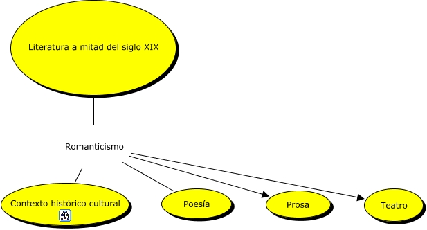 Este mapa conceptual tiene información relacionada a: romanticismo, Literatura a mitad del siglo XIX Romanticismo Teatro, Literatura a mitad del siglo XIX Romanticismo Contexto histórico cultural, Literatura a mitad del siglo XIX Romanticismo Poesía, Literatura a mitad del siglo XIX Romanticismo Prosa