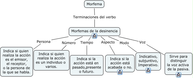 Este mapa conceptual tiene información relacionada a: morfemas de la desinencia, Morfemas de la desinencia Voz Sirve para distinguir la voz activa de la pasiva., Morfemas de la desinencia Tiempo Indica si la acción está en pasado,presente o futuro., Morfemas de la desinencia Número Indica si quien realiza la acción es un individuo o varios., Morfema Terminaciones del verbo Morfemas de la desinencia, Morfemas de la desinencia Modo Indicativo, subjuntivo, Imperativo., Morfemas de la desinencia Aspecto Indica si la acción está acabada o no., Morfemas de la desinencia Persona Indica si quien realiza la acción es el emisor, el receptor, o la persona de la que se habla.