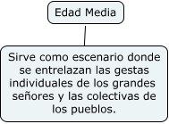 Este mapa conceptual tiene información relacionada a: edad media, Edad Media ???? Sirve como escenario donde se entrelazan las gestas individuales de los grandes señores y las colectivas de los pueblos.
