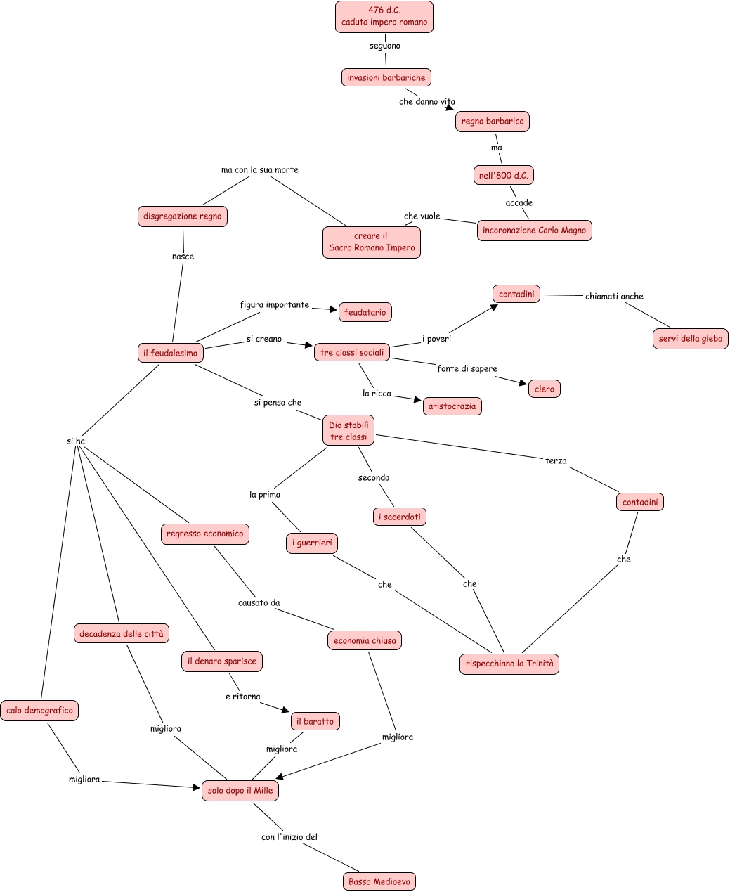 Questa Cmap, creata con IHMC CmapTools, contiene informazioni relative a: alto medioevo, economia chiusa migliora solo dopo il Mille, tre classi sociali la ricca aristocrazia, 476 d.C. caduta impero romano seguono invasioni barbariche, contadini che rispecchiano la Trinità, tre classi sociali fonte di sapere clero, solo dopo il Mille con l'inizio del Basso Medioevo, il feudalesimo figura importante feudatario, regno barbarico ma nell'800 d.C., contadini chiamati anche servi della gleba, incoronazione Carlo Magno che vuole creare il Sacro Romano Impero, il feudalesimo si ha regresso economico, il baratto migliora solo dopo il Mille, Dio stabilì tre classi la prima i guerrieri, nell'800 d.C. accade incoronazione Carlo Magno, tre classi sociali i poveri contadini, calo demografico migliora solo dopo il Mille, i sacerdoti che rispecchiano la Trinità, invasioni barbariche che danno vita regno barbarico, il feudalesimo si ha calo demografico, il feudalesimo si ha decadenza delle città