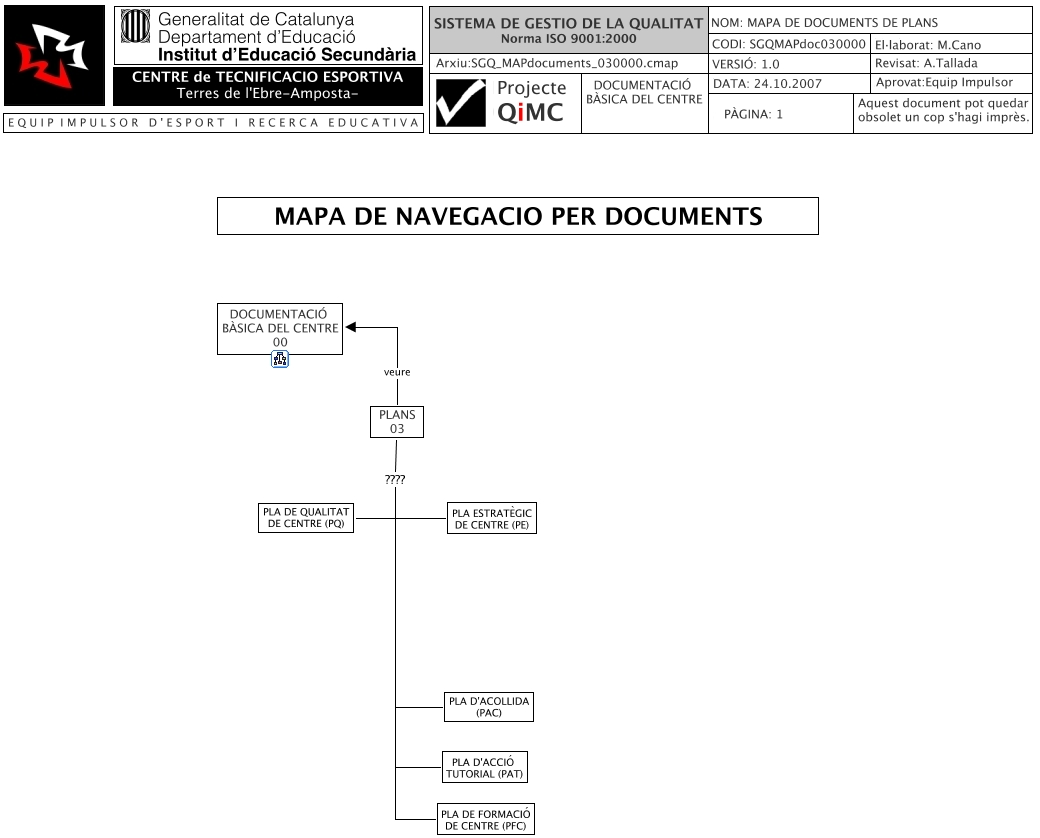 This Concept Map has information related to: SGQ_MAPdocuments_030000, PLANS 03 veure DOCUMENTACIÓ BÀSICA DEL CENTRE 00, PLANS 03 ???? PLA ESTRATÈGIC DE CENTRE (PE), PLANS 03 ???? PLA DE FORMACIÓ DE CENTRE (PFC), PLANS 03 ???? PLA D'ACCIÓ TUTORIAL (PAT), PLANS 03 ???? PLA D'ACOLLIDA (PAC), PLANS 03 ???? PLA DE QUALITAT DE CENTRE (PQ)